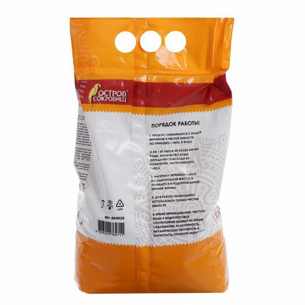 Гипс скульптурный для творчества, 3 кг, прочность Г-16, пакет, остров сокровищ, 664920 интересное:
