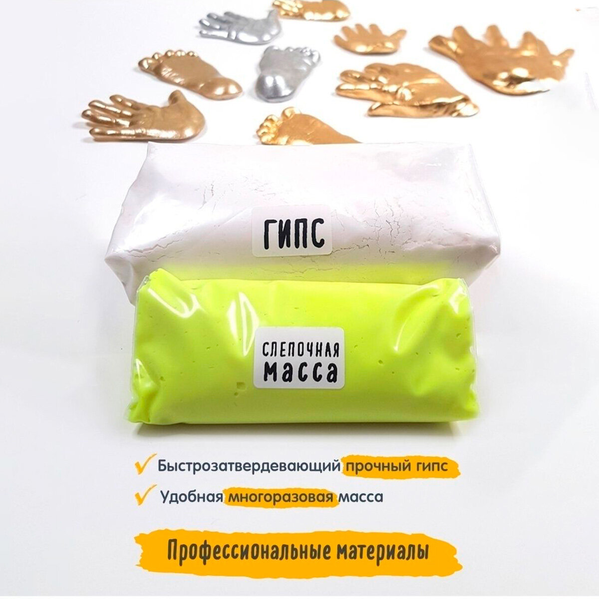 | Комплектация | Слепочная масса, гипс, краска золото/серебро, кисточка, шкурка, ложка, инструкция |