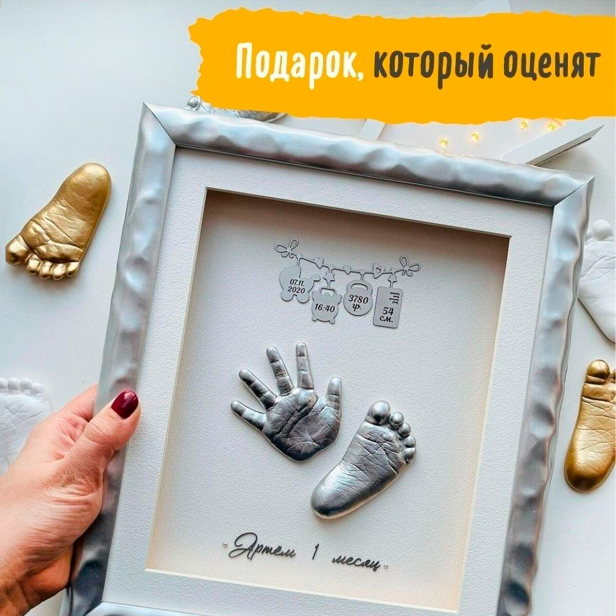 Набор "Киндер след" для создания 3d-слепков ножек и ручек малыша с метриками базовый набор 3