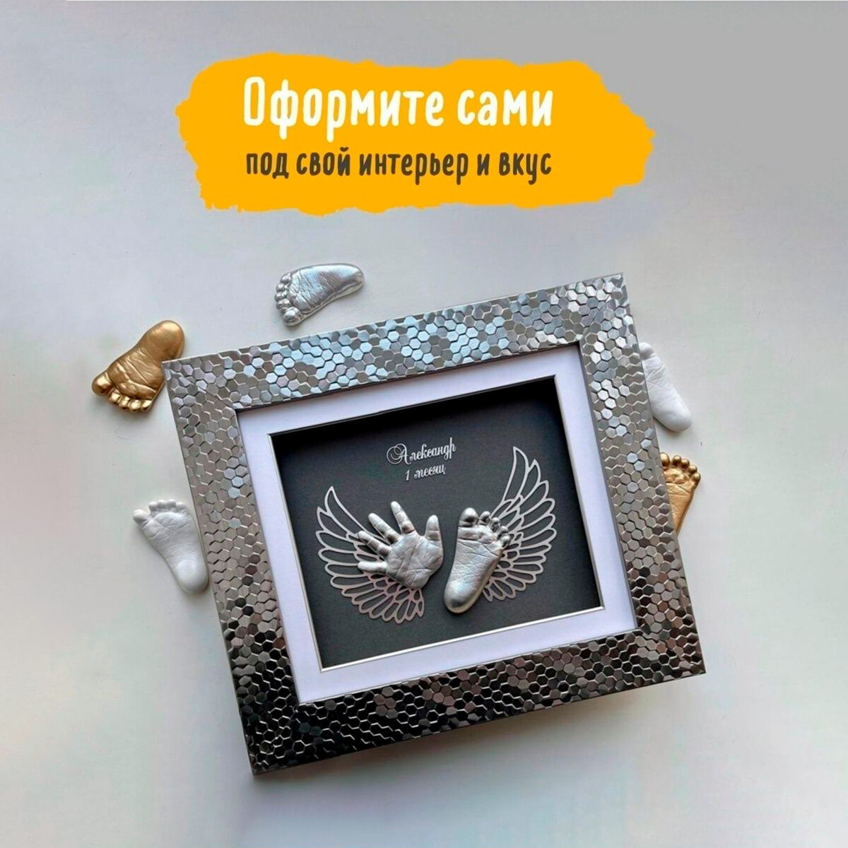 Набор "Киндер след" для создания 3d-слепков ножек и ручек малыша с декором
