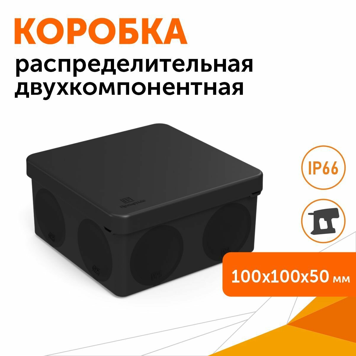 Купить Коробка распределительная 60-0300-9005 для прямого монтажа двухкомпонентная безгалогенная (HF) черная 100х100х50 Промрукав