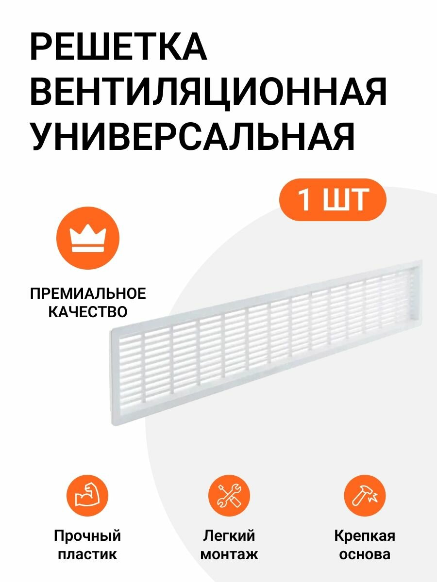 Решетка вентиляционная универсальная, 227x68 мм, пластик, белый, 1 шт
