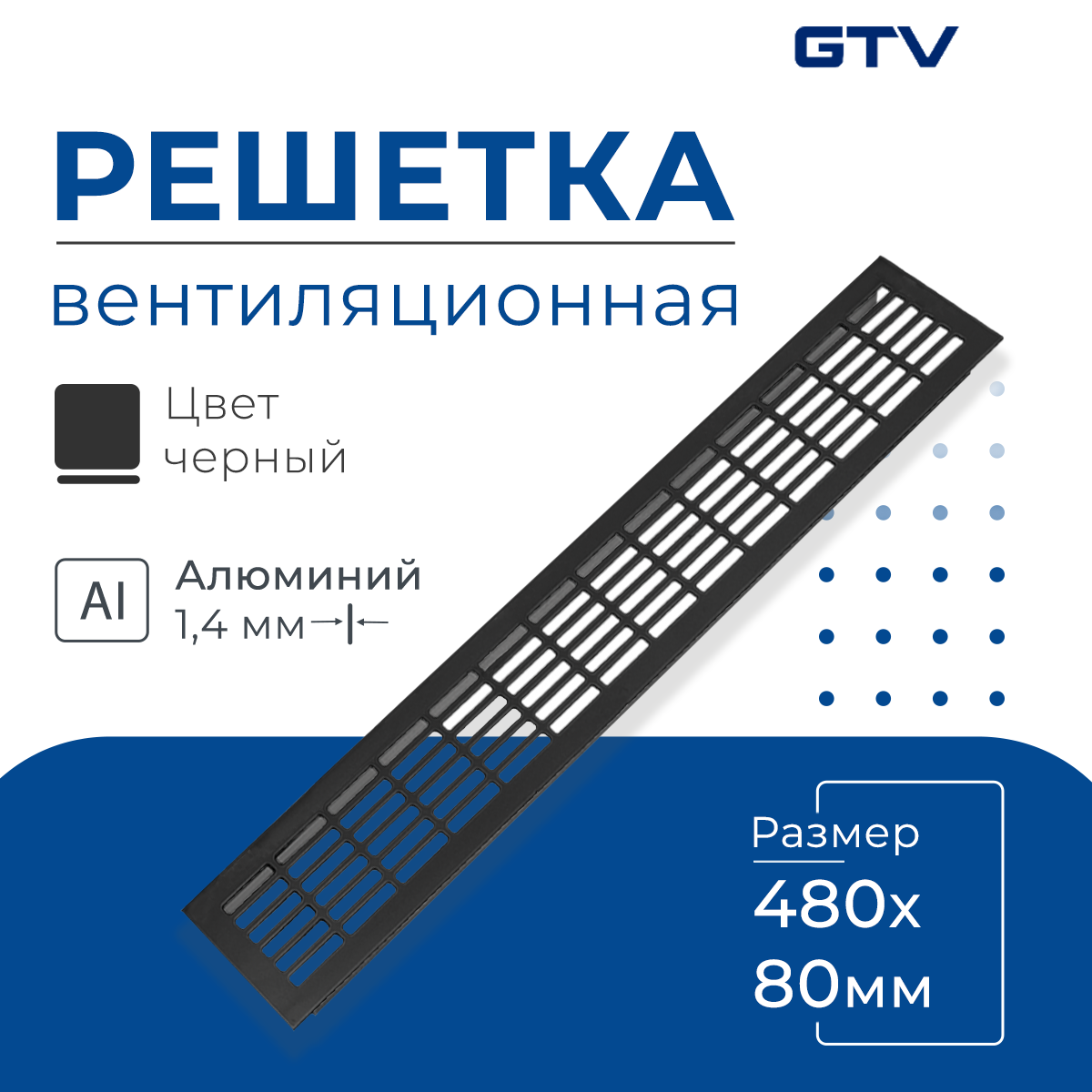 Купить Вентиляционная решетка GTV, 480х80 мм, черная