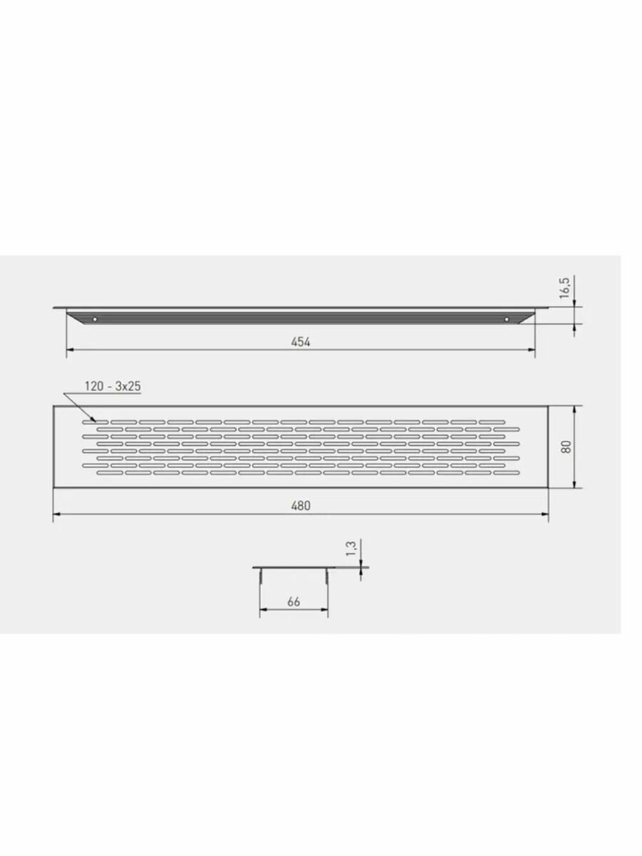 Решетка вентиляционная металлическая мебельная 480х80 мм шлифованная сталь