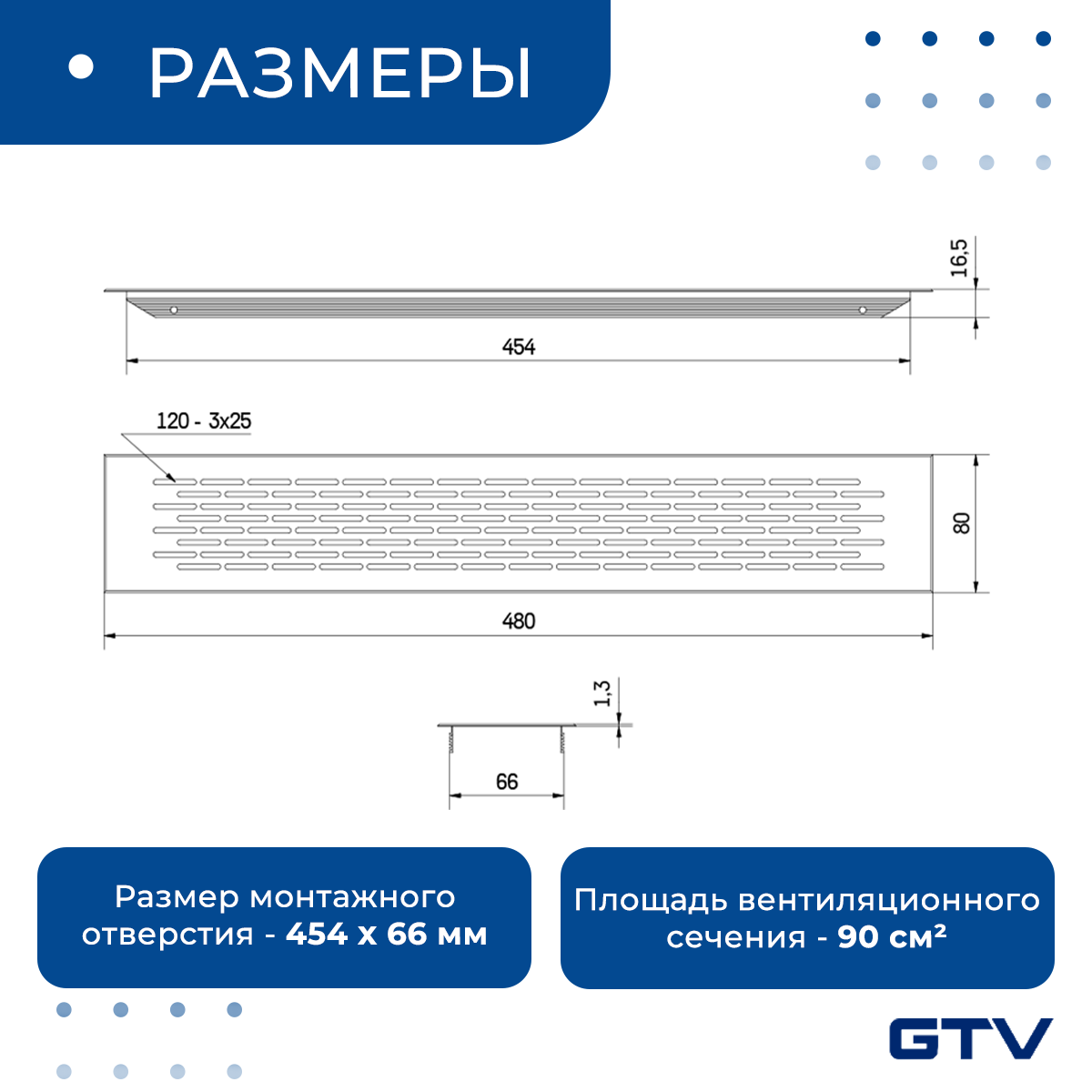 Вентиляционная решетка GTV, 480х80 мм, белая