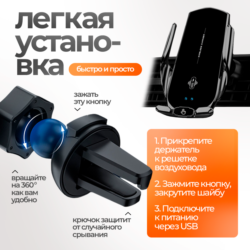 Автомобильный держатель для телефона с беспроводной зарядкой SMART SENSOR Q3