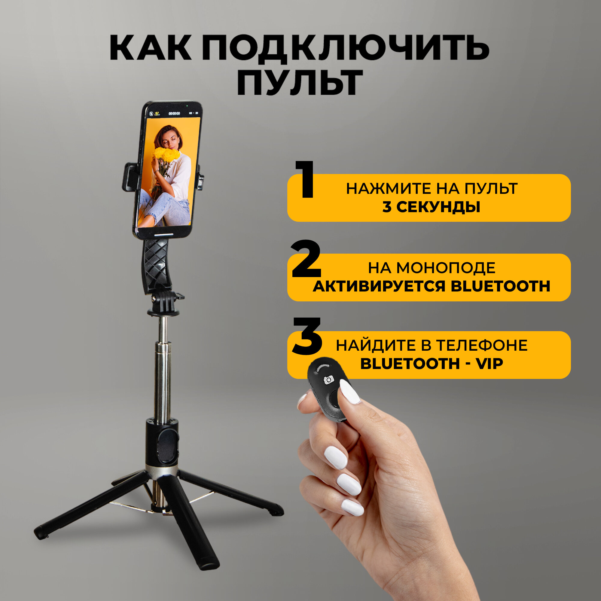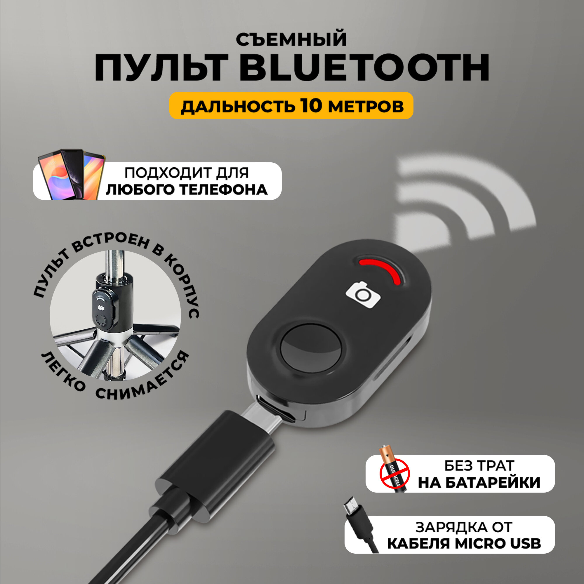 | Особенности | Bluetooth, аккумулятор, пульт ДУ, с поворотом, удлинительная штанга |