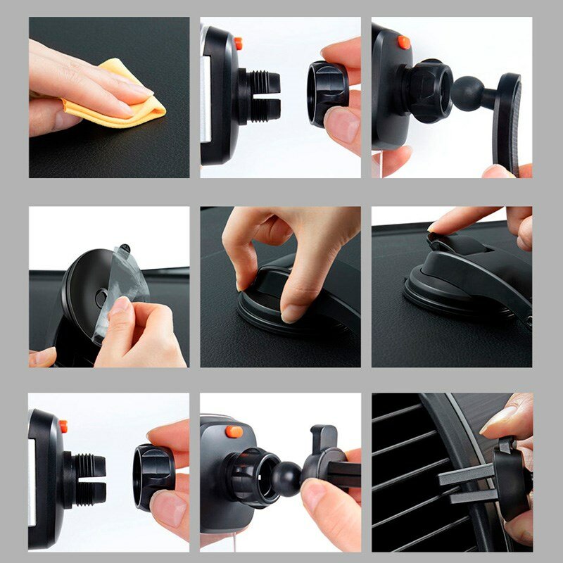 Автомобильный держатель Baseus Easy Control Clamp Car Mount Holder (A Set) черный (крепление на панель, стекло, в решетку) (SUYK000001)