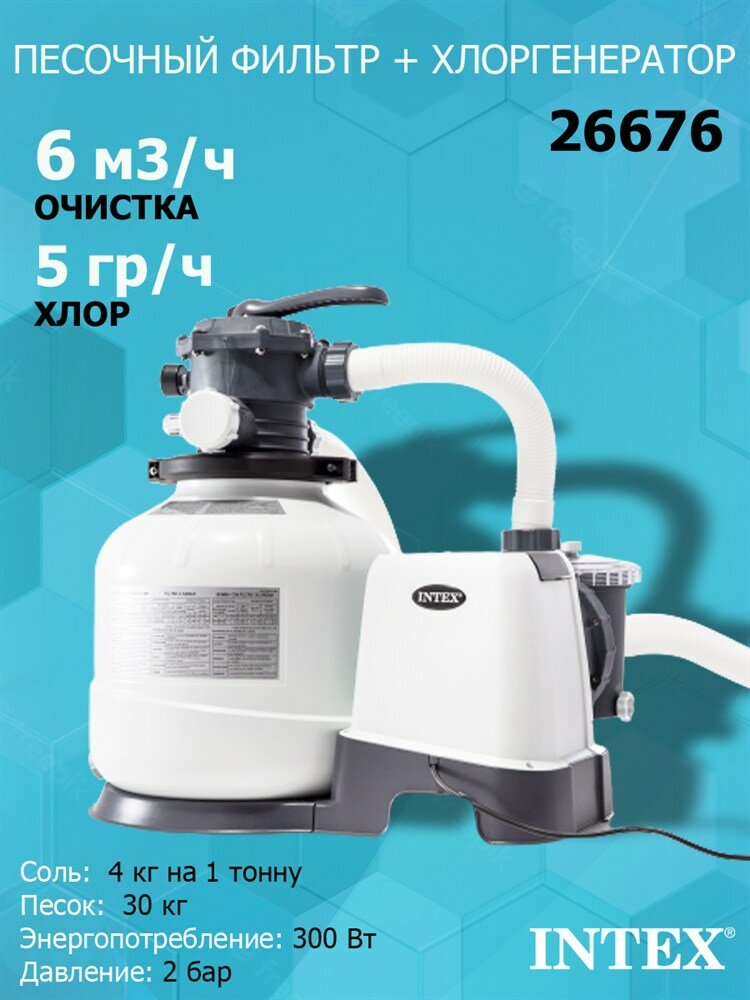 Купить INTEX Хлоргенератор 26676 Intex + песочный фильтр насос Krystal Clear (6000 л/ч) 26676