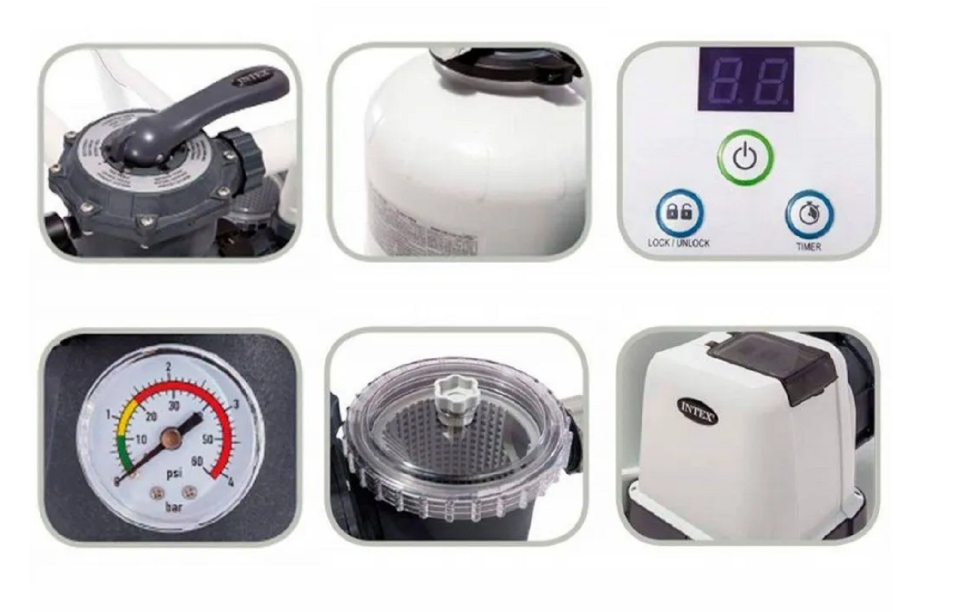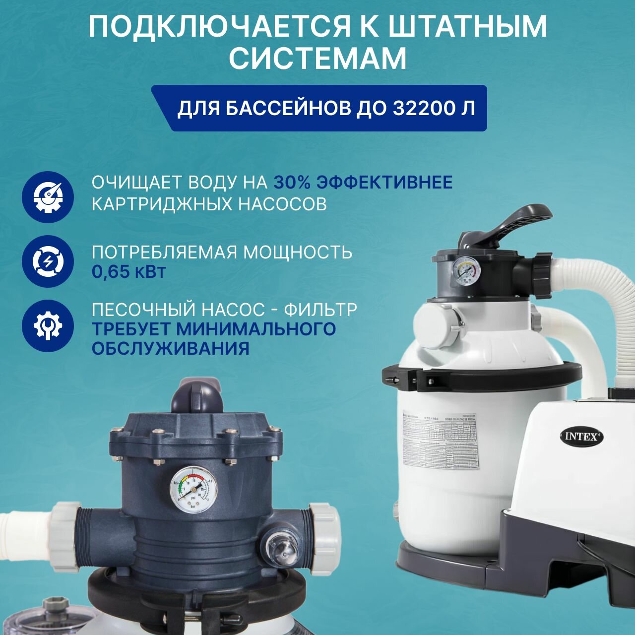 Насос-фильтр песочный для бассейнов QX2100, 6000 л/ч + очистка воды Intex (26676)