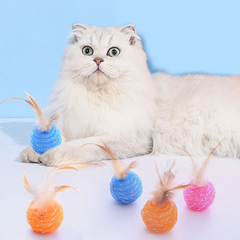Купить Мячик для кошек с погремушками и перьями