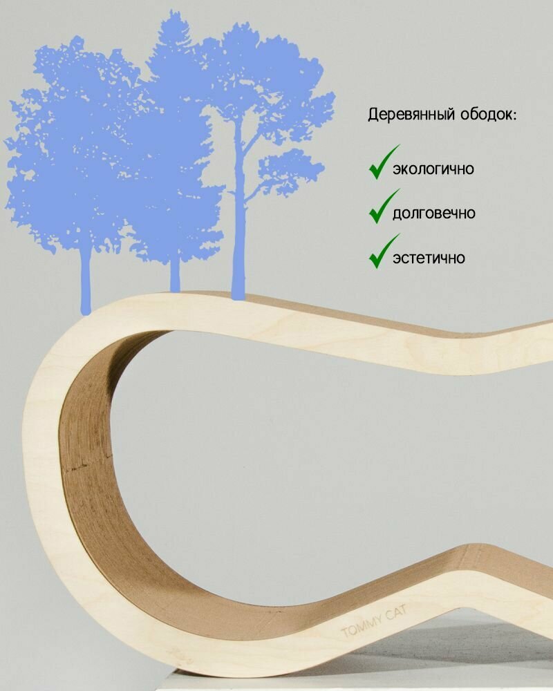 Когтеточка из картона для кошек с деревянным ободком Tommy Cat Слэш светлая интересное: