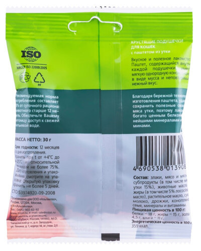 Купить TiTBiT 20шт по 30г хрустящие подушечки для кошек с паштетом из утки