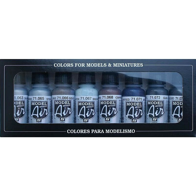 Купить Набор акриловых красок Vallejo серии Model Air - Metallic Colors 71176 (8 красок по 17 мл)