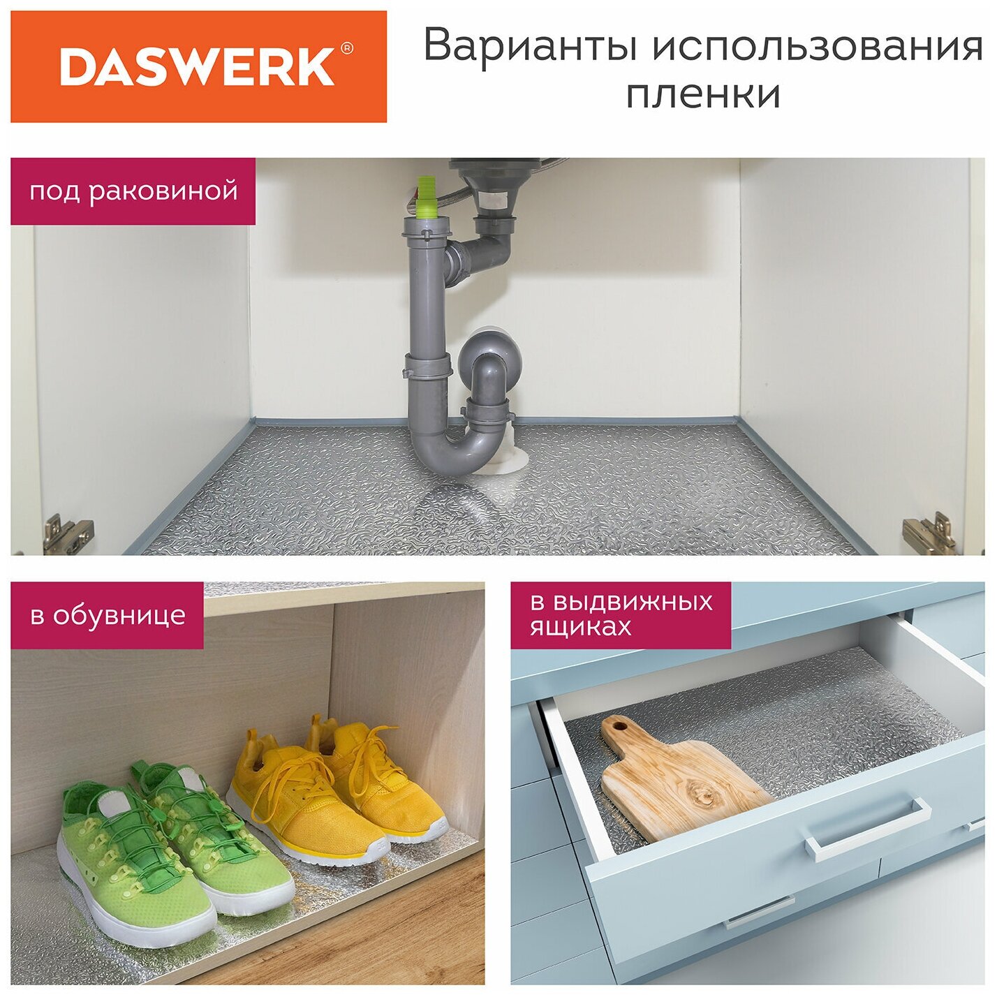 Самоклеящаяся пленка, алюминиевая фольга защитная для кухни/дома, 0,6х3 м, серебро, узор, DASWERK, 607846, комплект 2 шт.