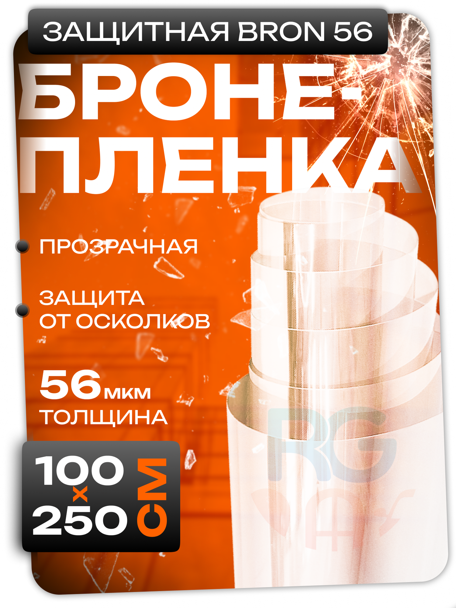 Бронепленка для стекла. Защитная пленка на окна Bron 56, размер: 75х250 см