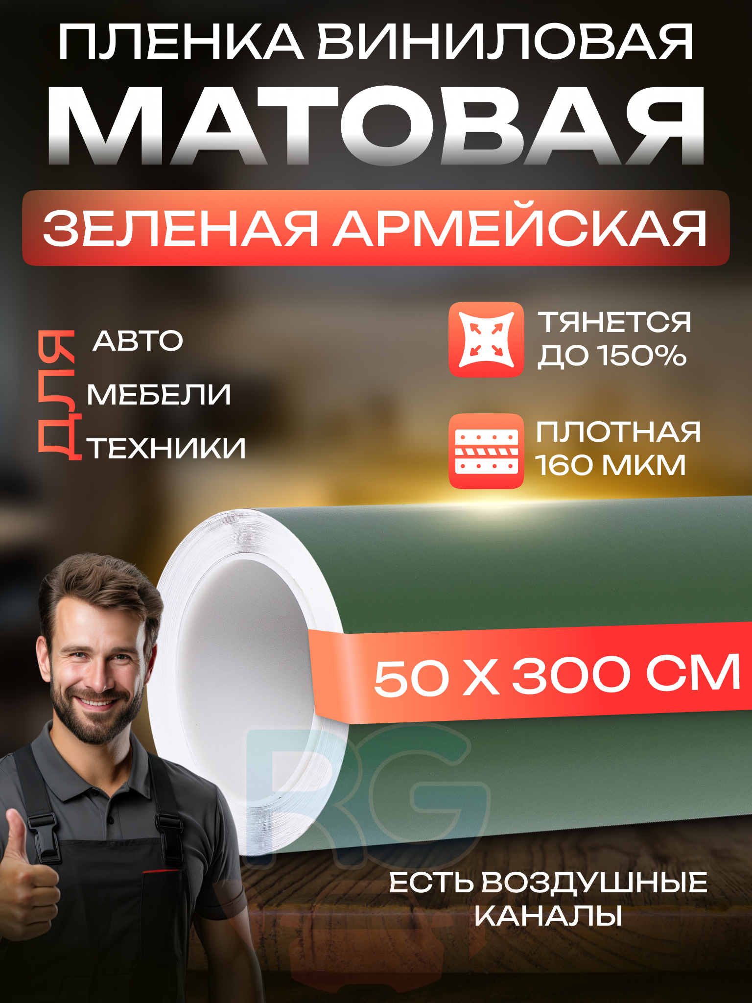Виниловая плёнка матовая в салон авто. Защитная пленка универсальная: 70х152 см, цвет: армейский зеленый