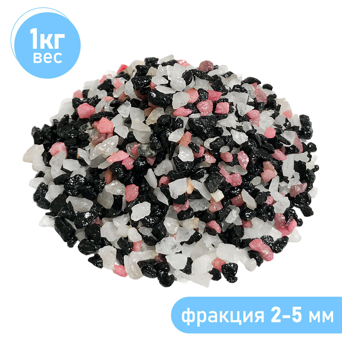 Натуральный грунт для аквариума террариума палюдариума, для суккулентов и растений, Zoo One, природный материал, "Чёрный+кварц", (фракция 2-5 мм) 1 кг