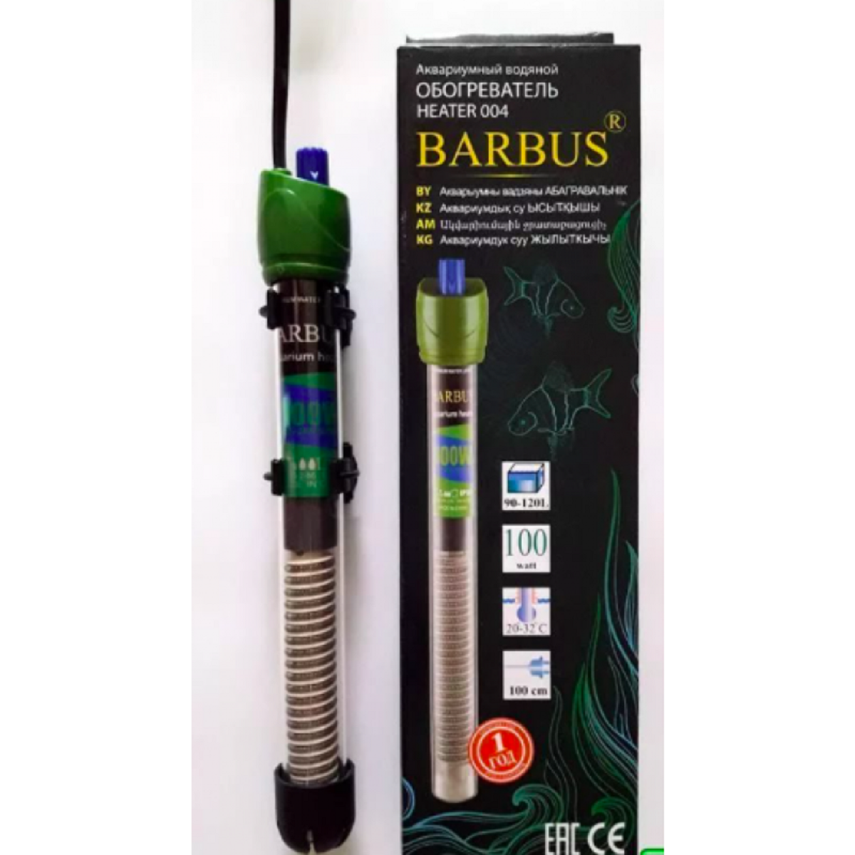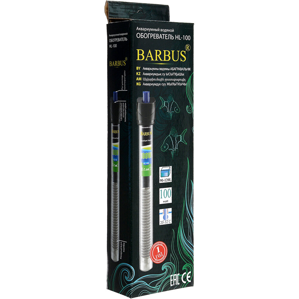 Обогреватель терморегулятор BARBUS HEATER 004 100watt для аквариума 90-120л стекло 100см электрошнур