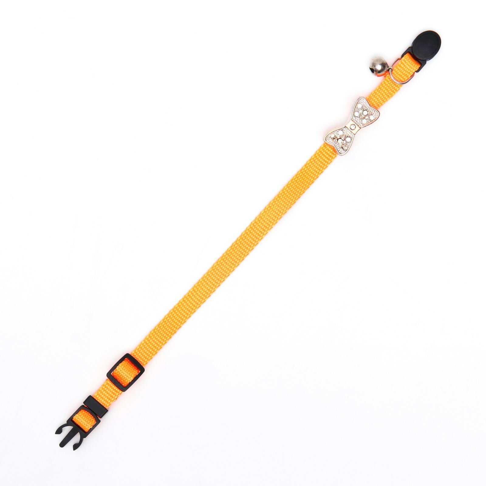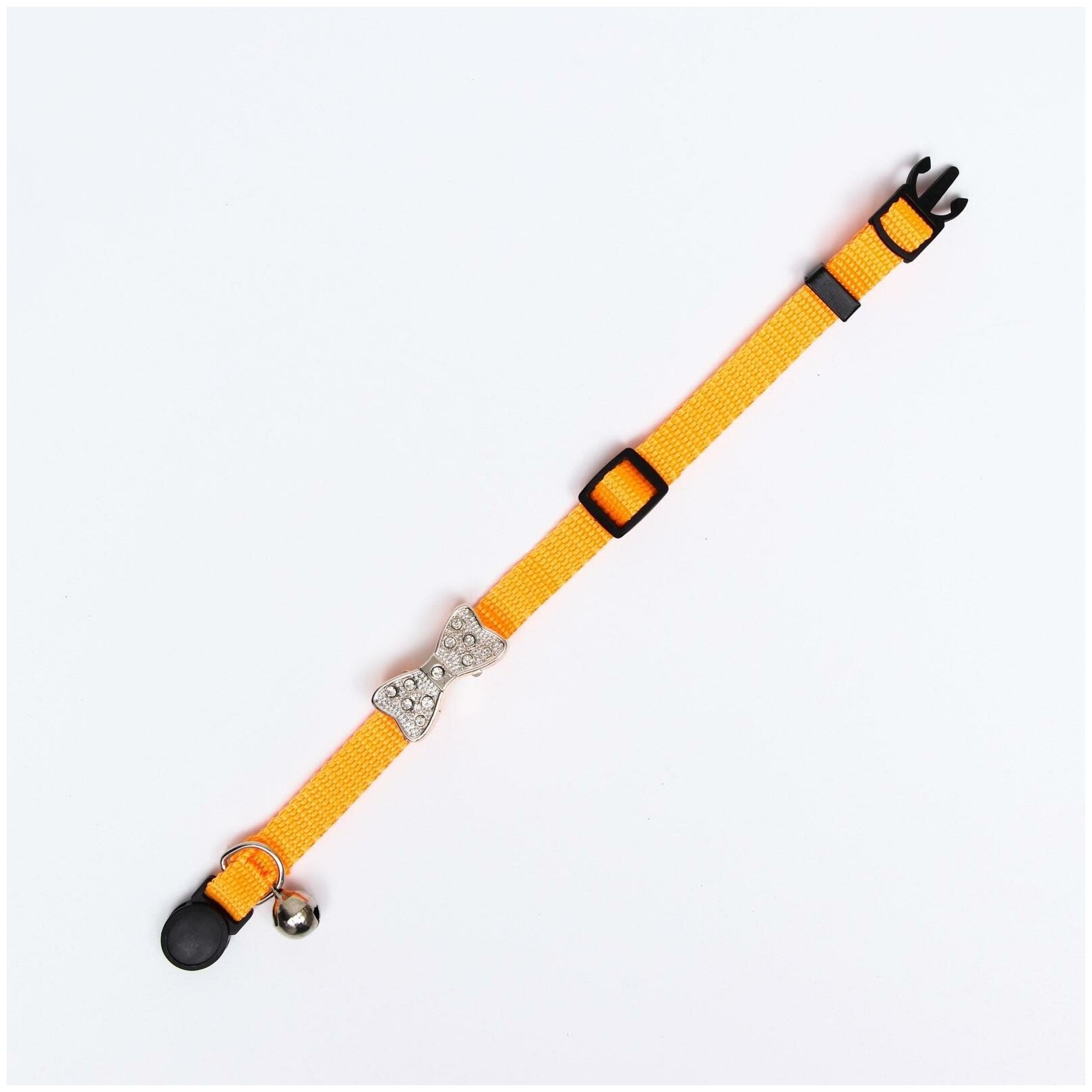 Купить Ошейник кошачий "Бантик" со стразами, 30 х 1 см, оранжевый 7024545