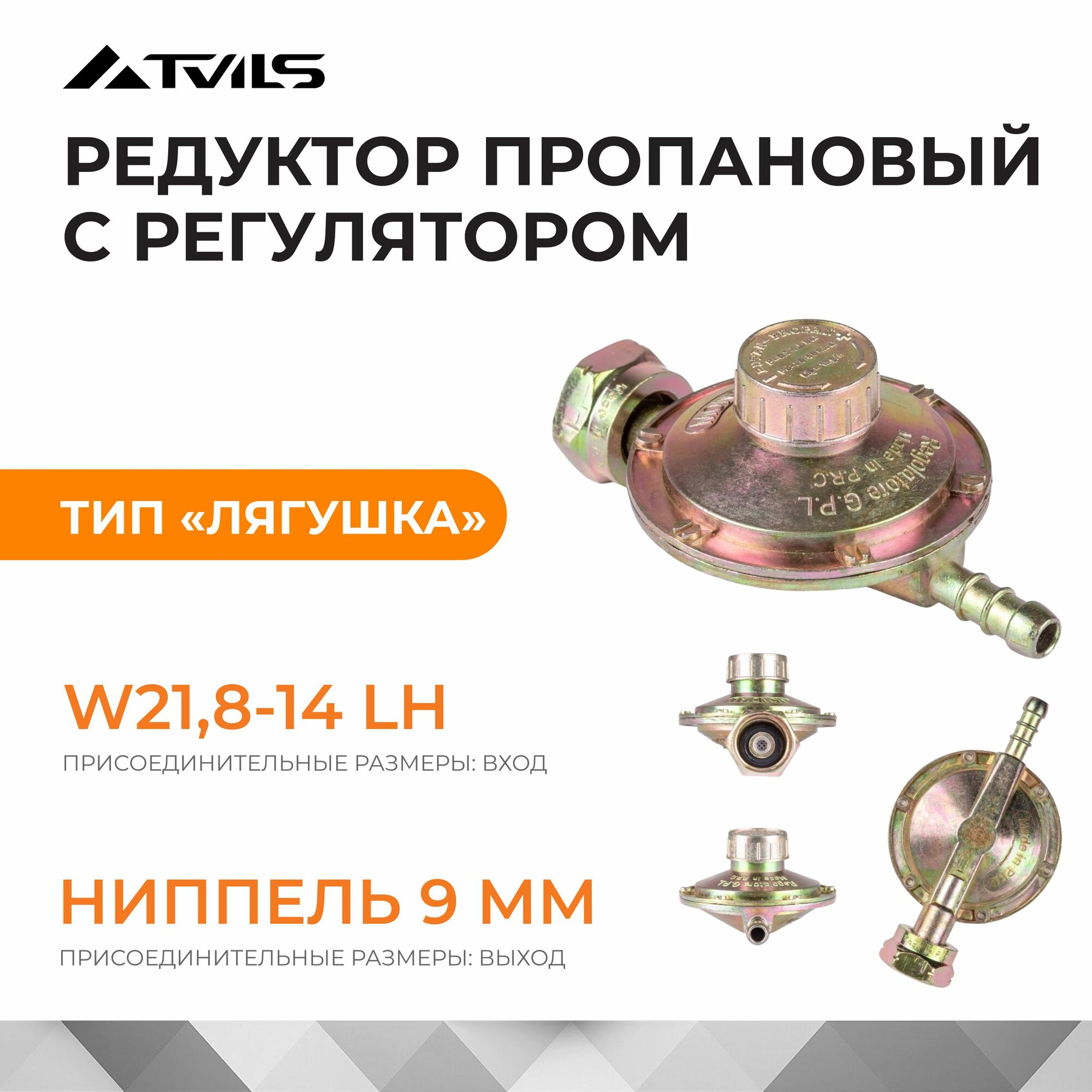 | Дополнительная информация | Пропан. Вход - гайка W21,8-14"LH. Выход - резьба - резьба 1/2" Давление на выходе: 0,02-0,06 МПа. |