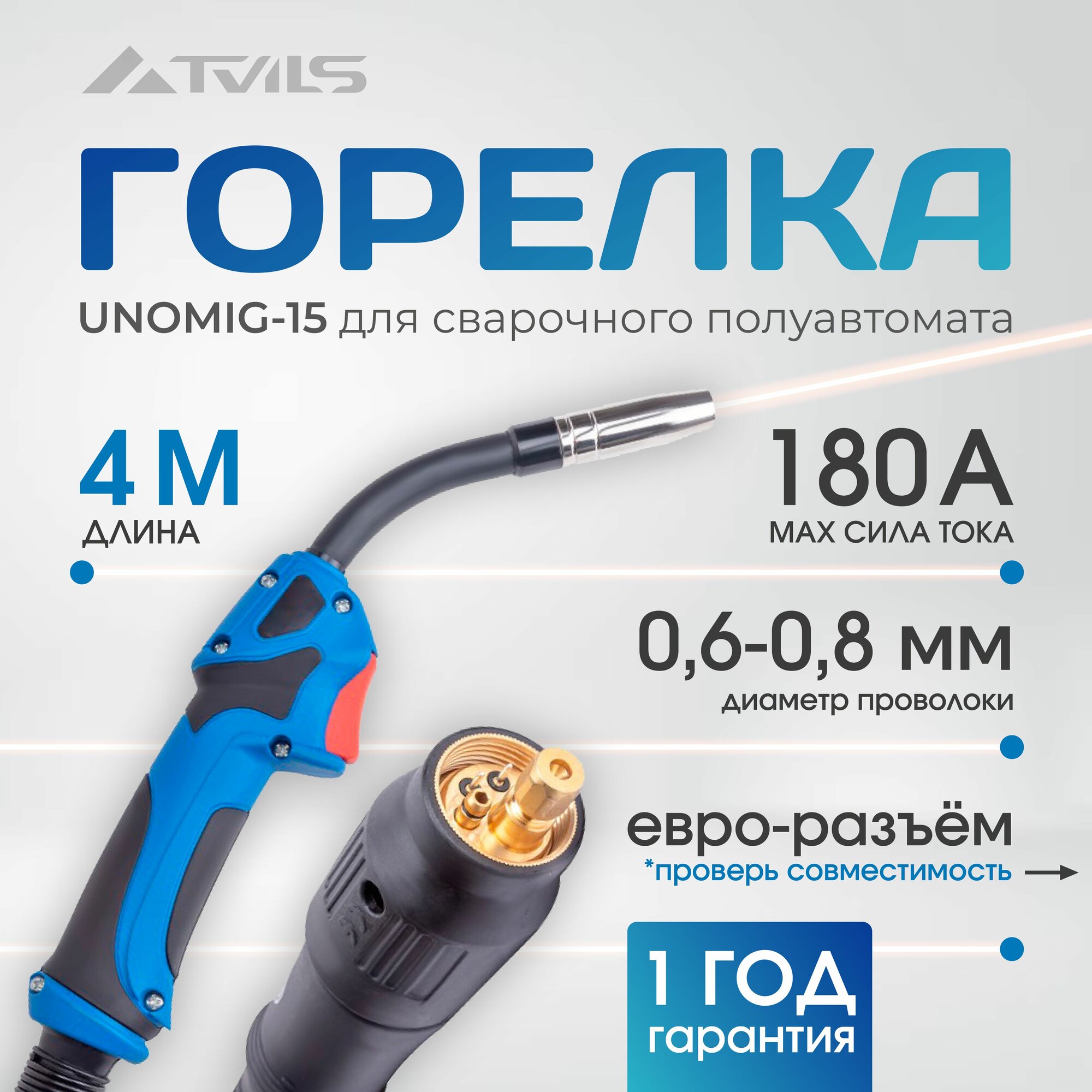 Горелка сварочная для полуавтомата FoxWeld UNOMIG-15 / 4 Метра / шарнир / универсальный евро разъем