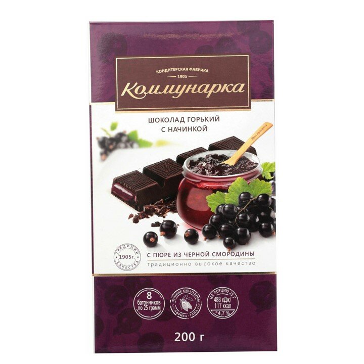Шоколад коммунарка горький с пюре из черной смородины 2 шт по 200гр