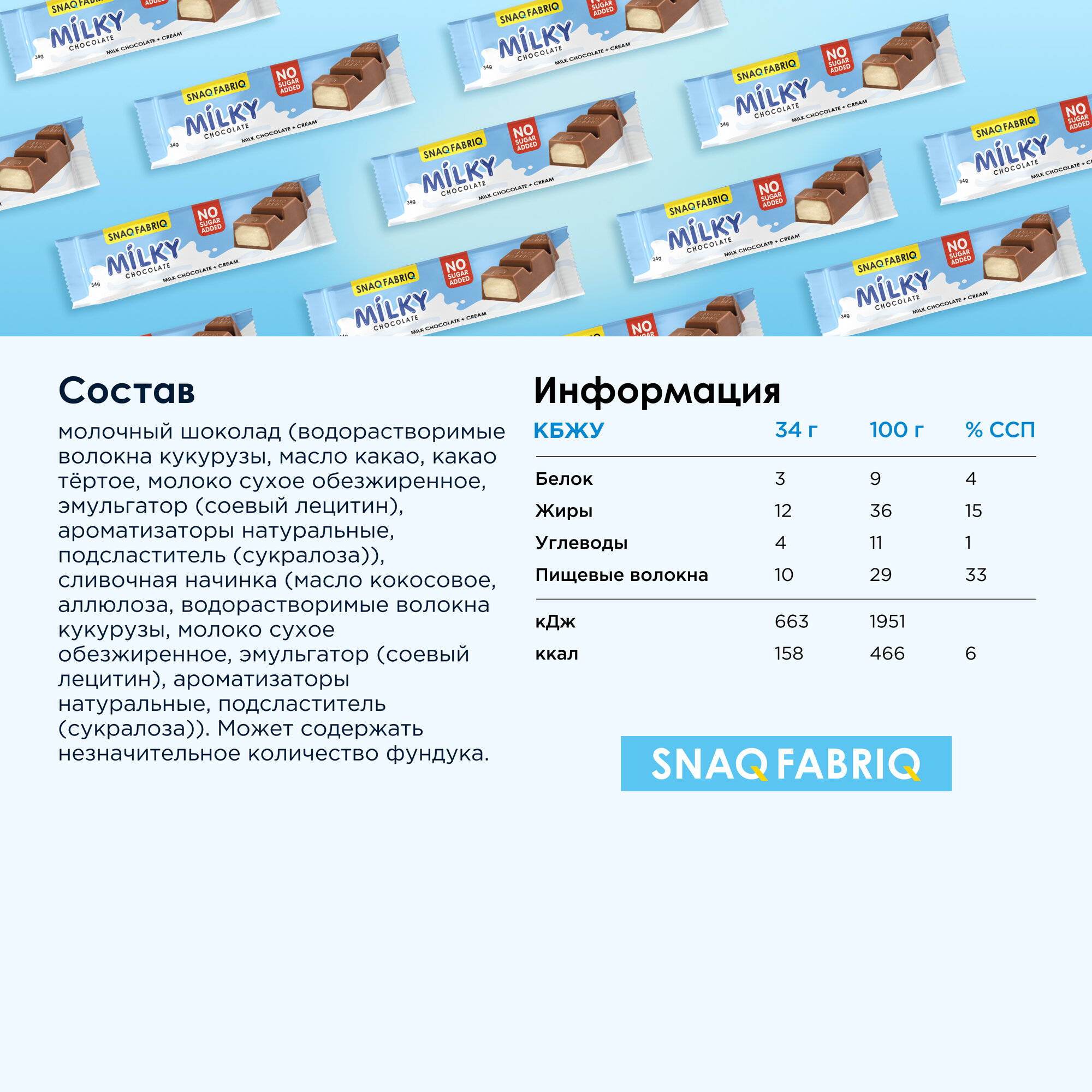 Шоколад Snaq Fabriq порционный без сахара со сливочной начинкой Milky (16шт х 34г) интересное: