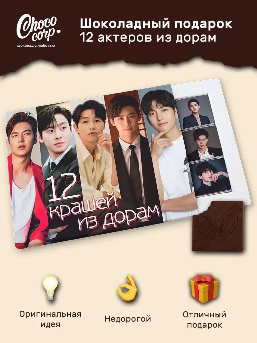 Подарочный шоколадный набор Choco Corp, сладкий бокс 12 мини плиток шоколада с актерами из дорам