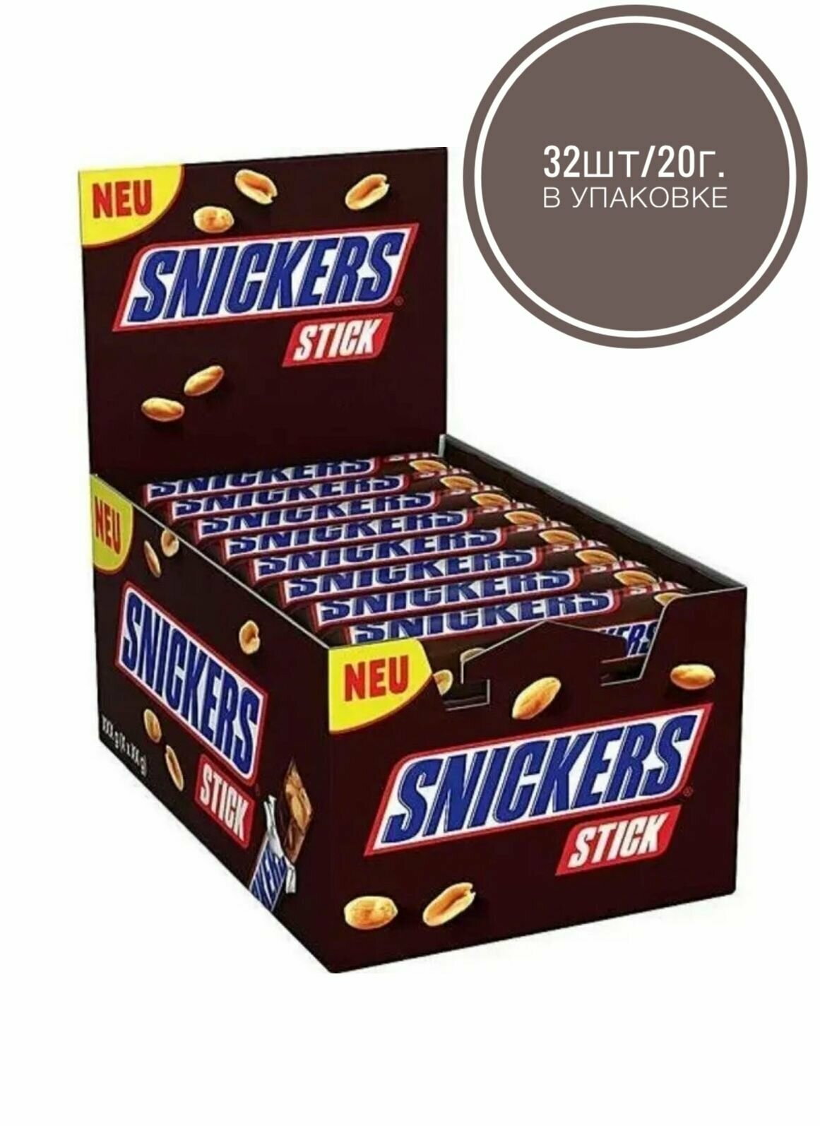 Шоколадный батончик "Snickers Stick", 20г/32шт. интересное: