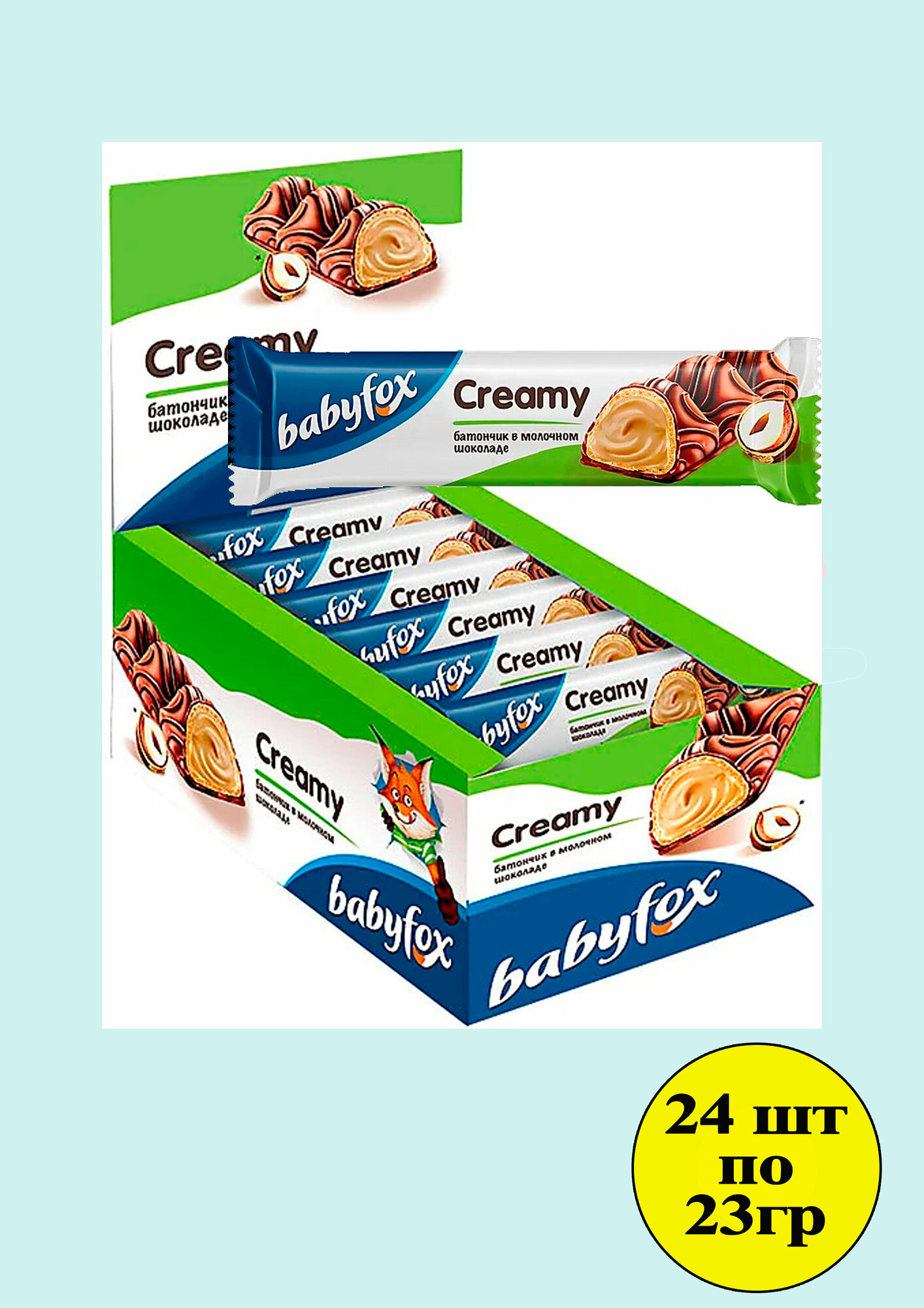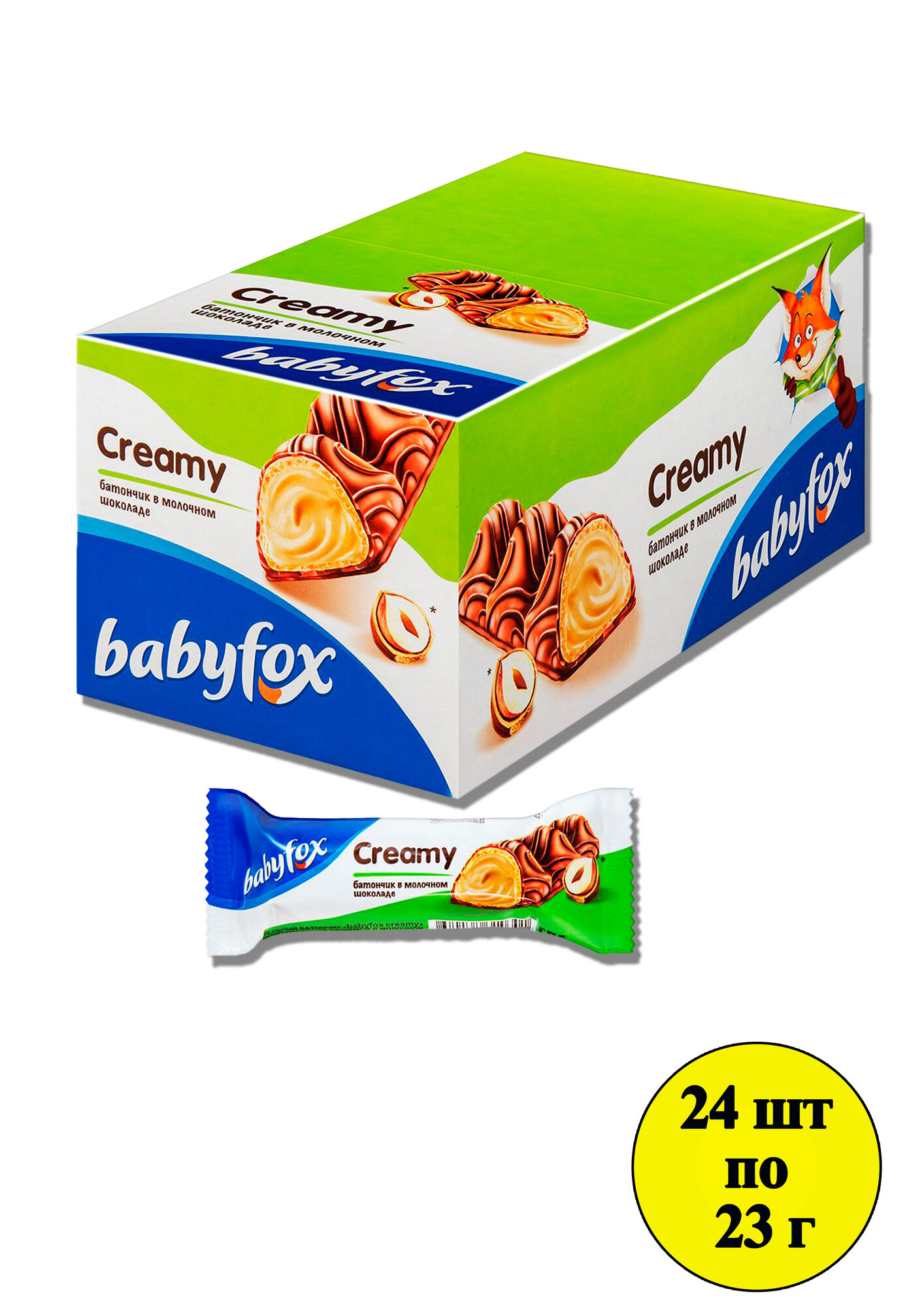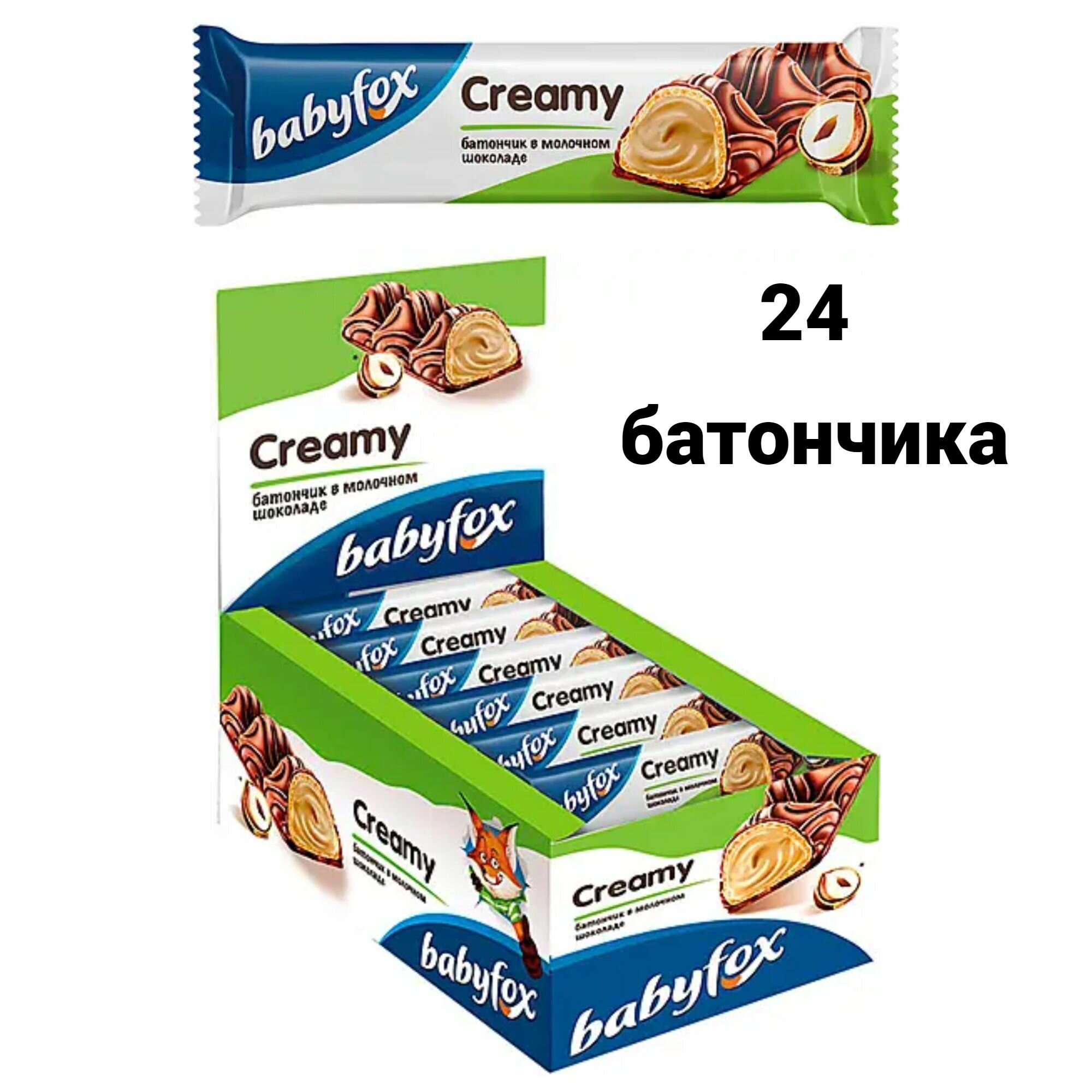 Вафельный батончик BabyFox CREAMY (Бэби Фокс) в молочном шоколаде, 24 штуки по 23 грамма интересное: