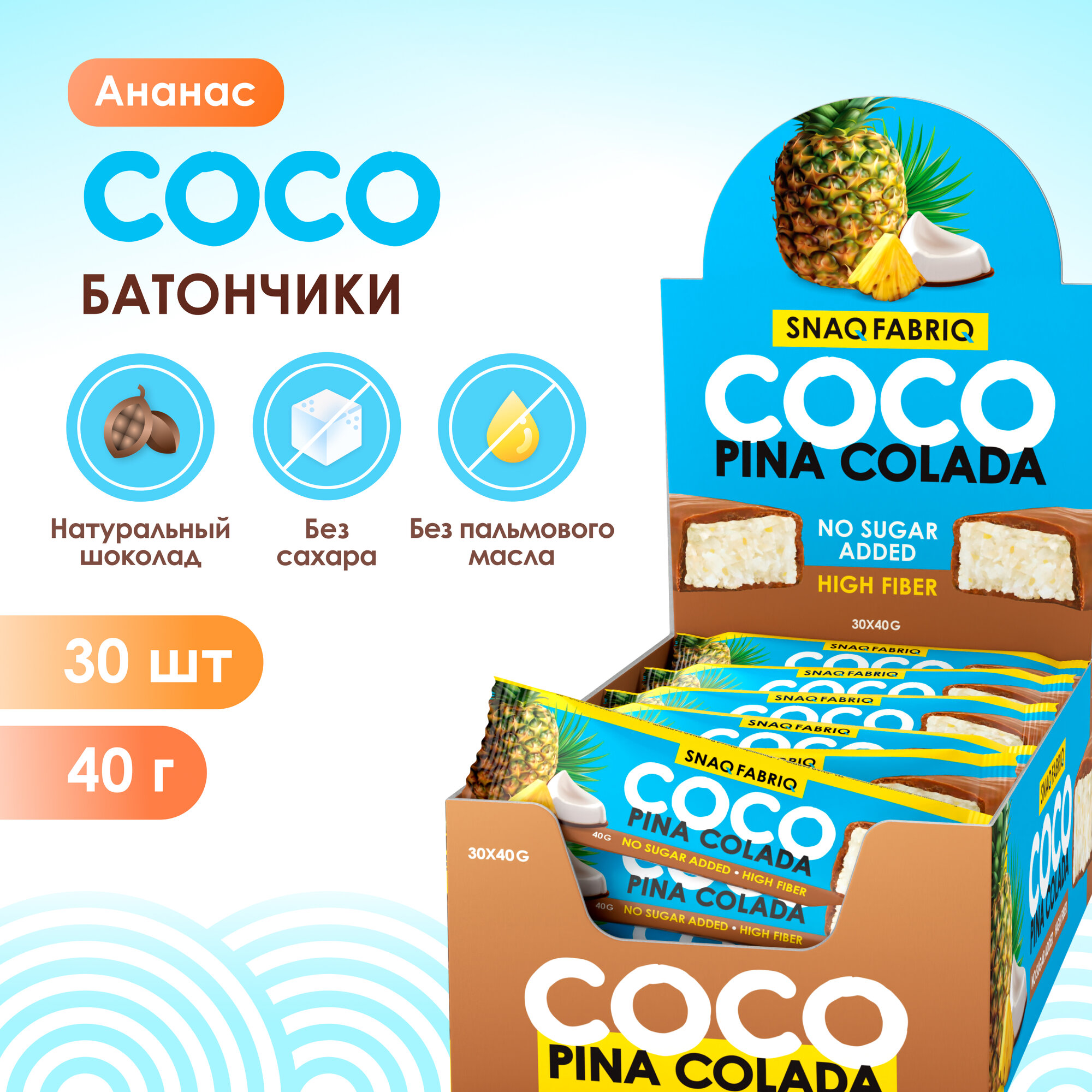 Купить Snaq Fabriq сосо Кокосовые батончики в шоколаде без сахара "Кокос - Ананас", 30шт х 40г