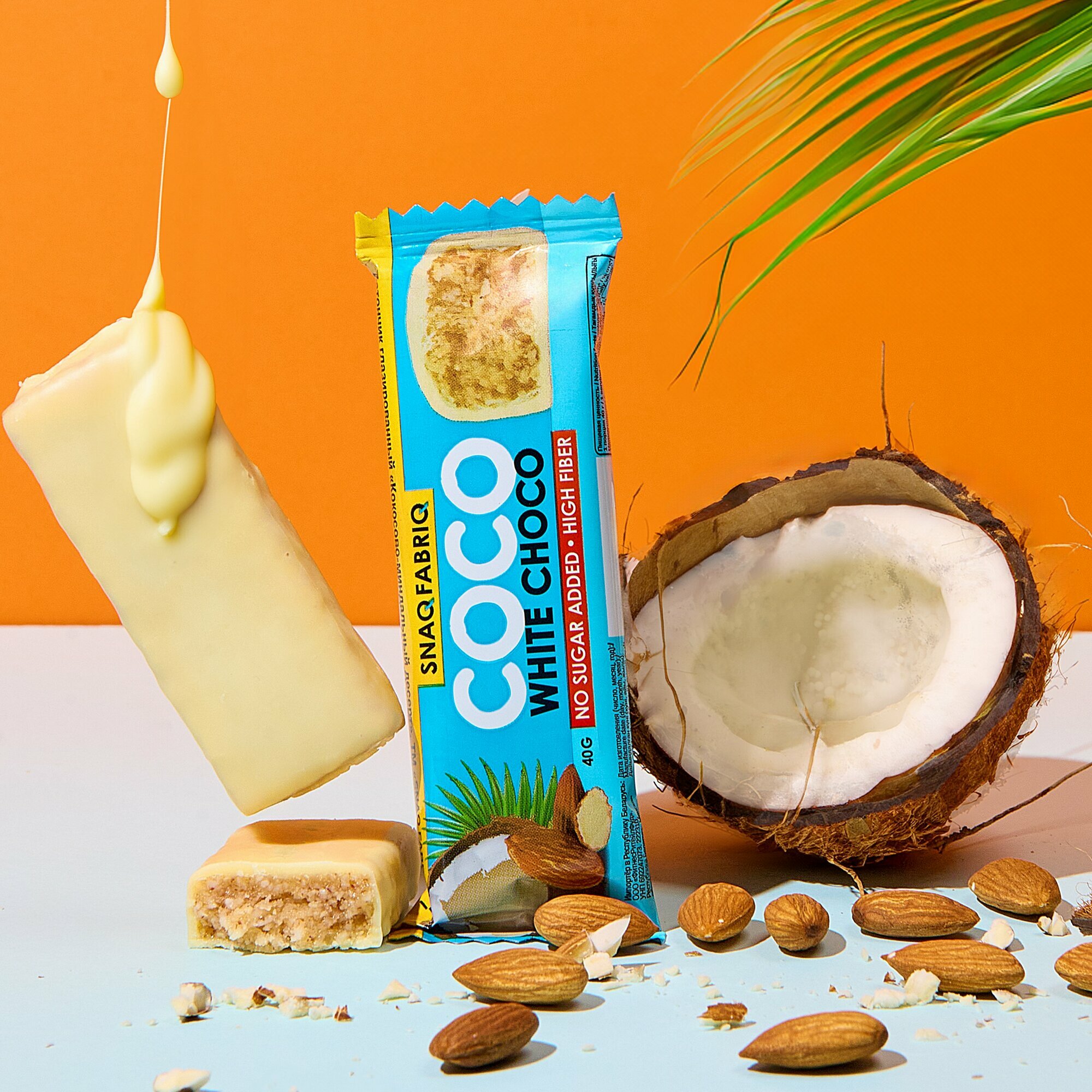 Кокосовые батончики Snaq Fabriq COCO в белом шоколаде без сахара "Миндаль - Кокос", 12шт х 40г