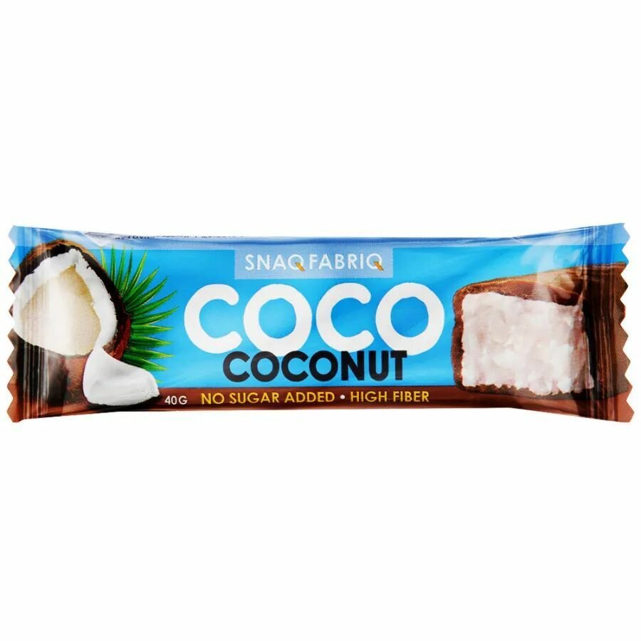 Батончик Snaq Fabriq COCO COCONUT, глазированный с начинкой кокос, с высоким содержанием клетчатки, 40 гр