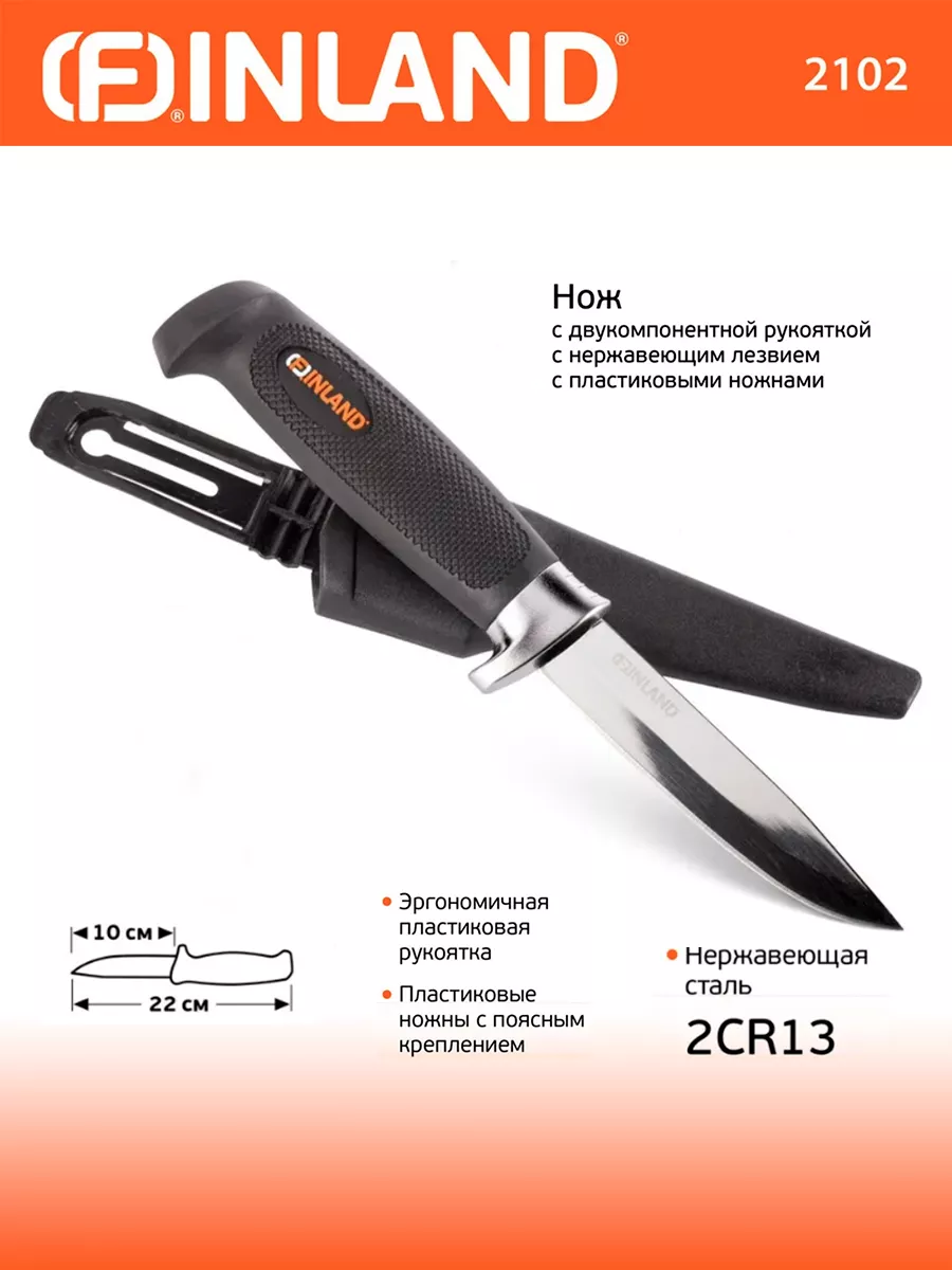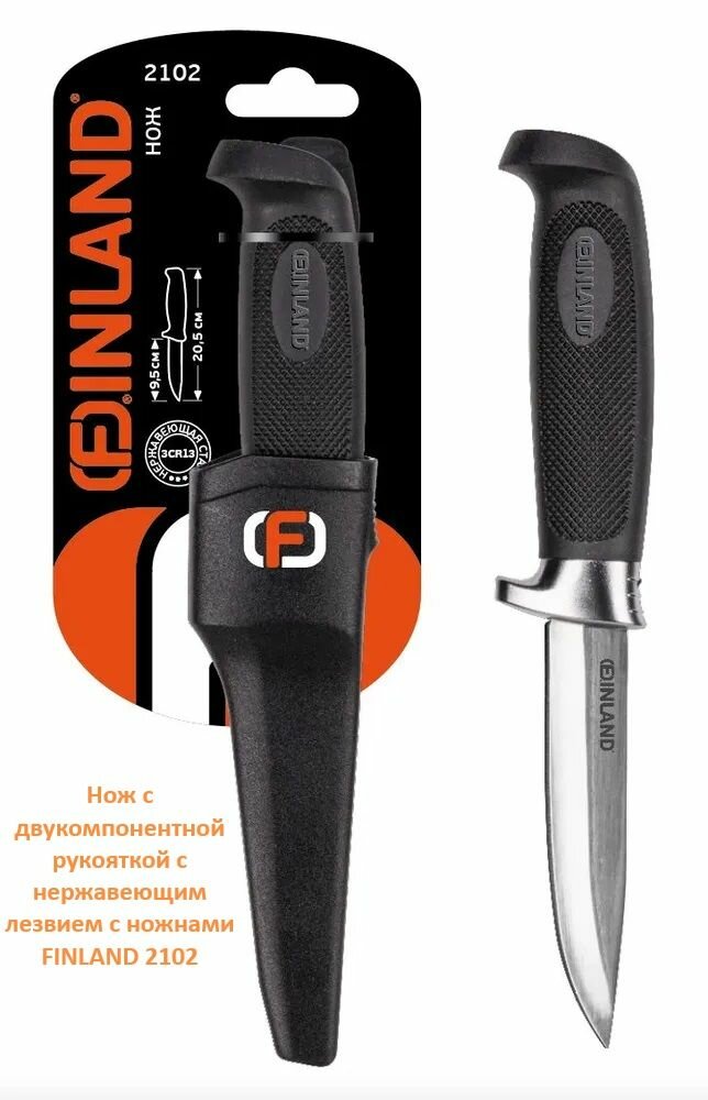 Нож с двукомпонентной рукояткой с нержавеющим лезвием с ножнами FINLAND 2102 интересное:
