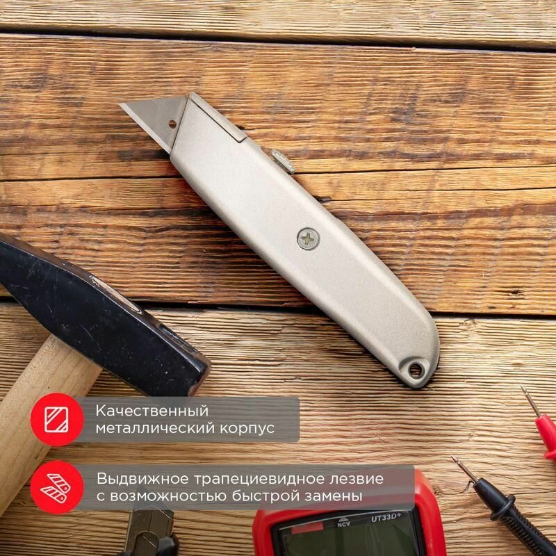 Нож с трапециевидным 15 мм выдвижным лезвием Rexant 12-4907 интересное: