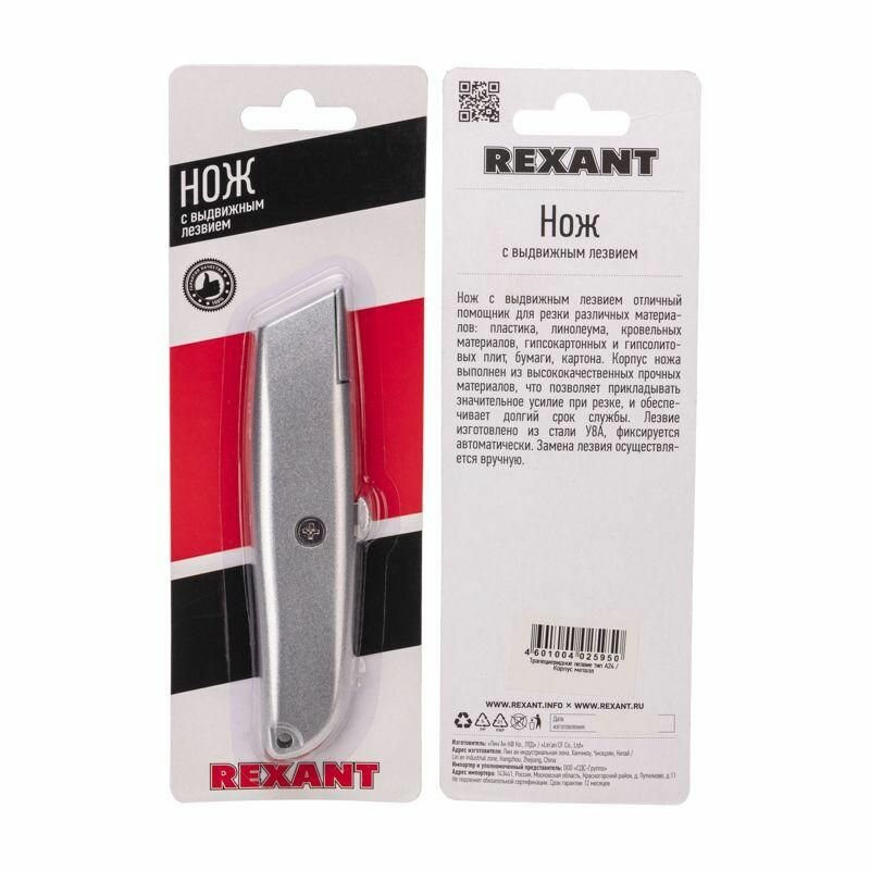 Купить Нож с трапециевидным 15 мм выдвижным лезвием Rexant 12-4907