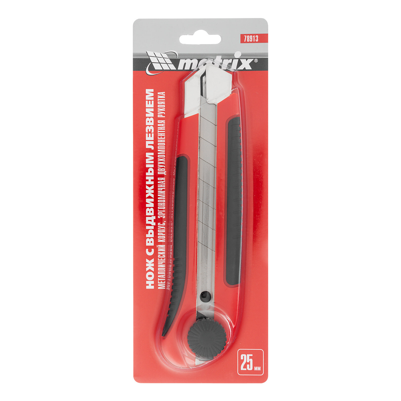 Нож 25мм, выдвиж-е лезвие, метал. напр., 2-комп. ручка, фиксатор //MATRIX