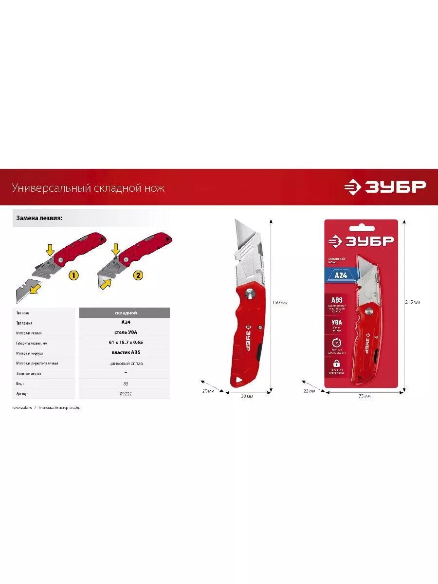Купить ЗУБР А24, универсальный складной нож (09222) (09222)