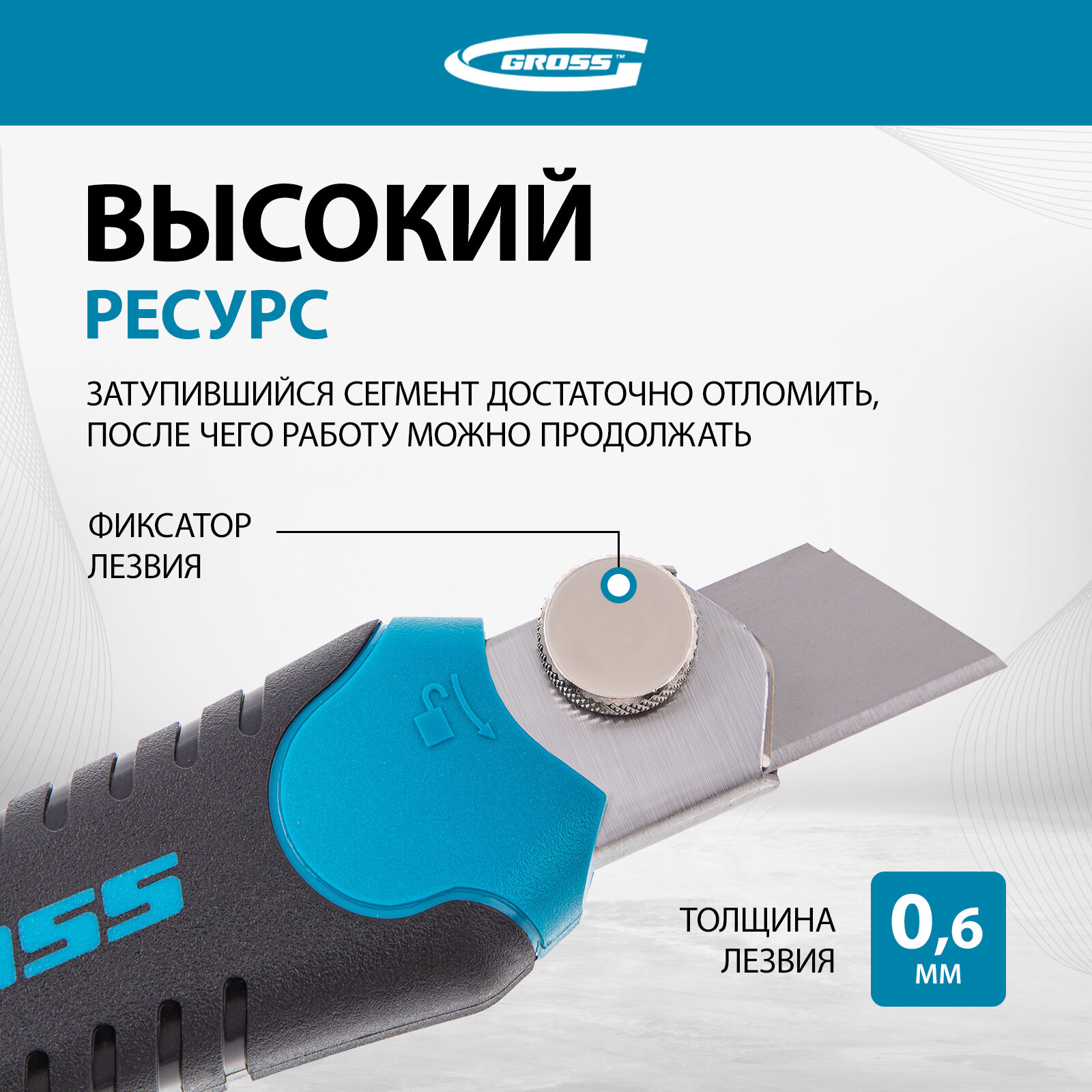 Купить Нож Gross 170 мм обрезин. ABS - корпус, выдв.сегм.лезвие 18 мм (SK-5), метал. напр-щая, 5 лезвий 78893