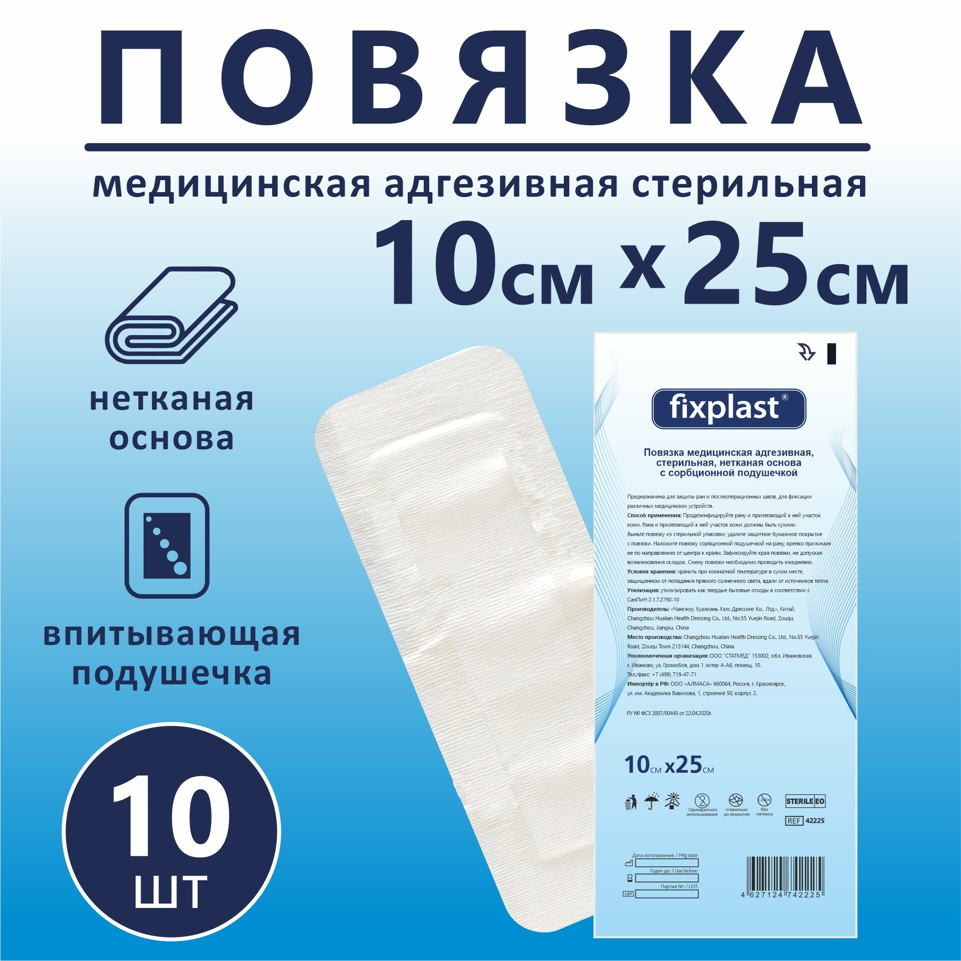 СохранитьПластырь повязка Fixplast 25*10 см, 10 шт медицинская стерильная на рану и шов с сорбционной подушечкой интересное:
