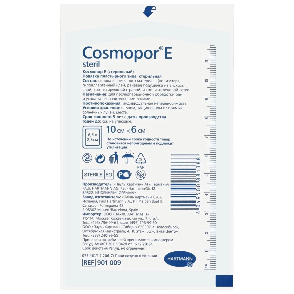 Хартманн Cosmopor E повязка стерильная сорбционная 10 x 6 см, 25 шт.