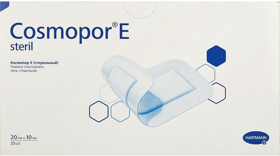 Пластырная повязка на рану COSMOPOR E steril (Космопор Е) для стерильного ухода при повреждениях кожи и послеоперационными ранами: 20 х 10 см; 25 шт.