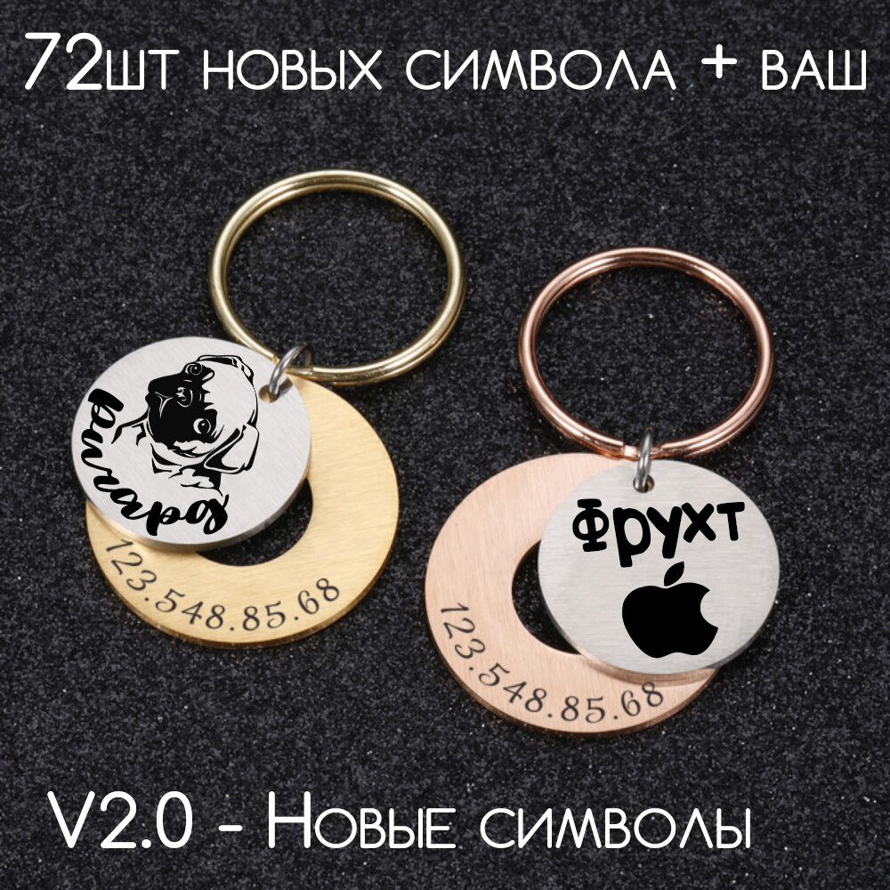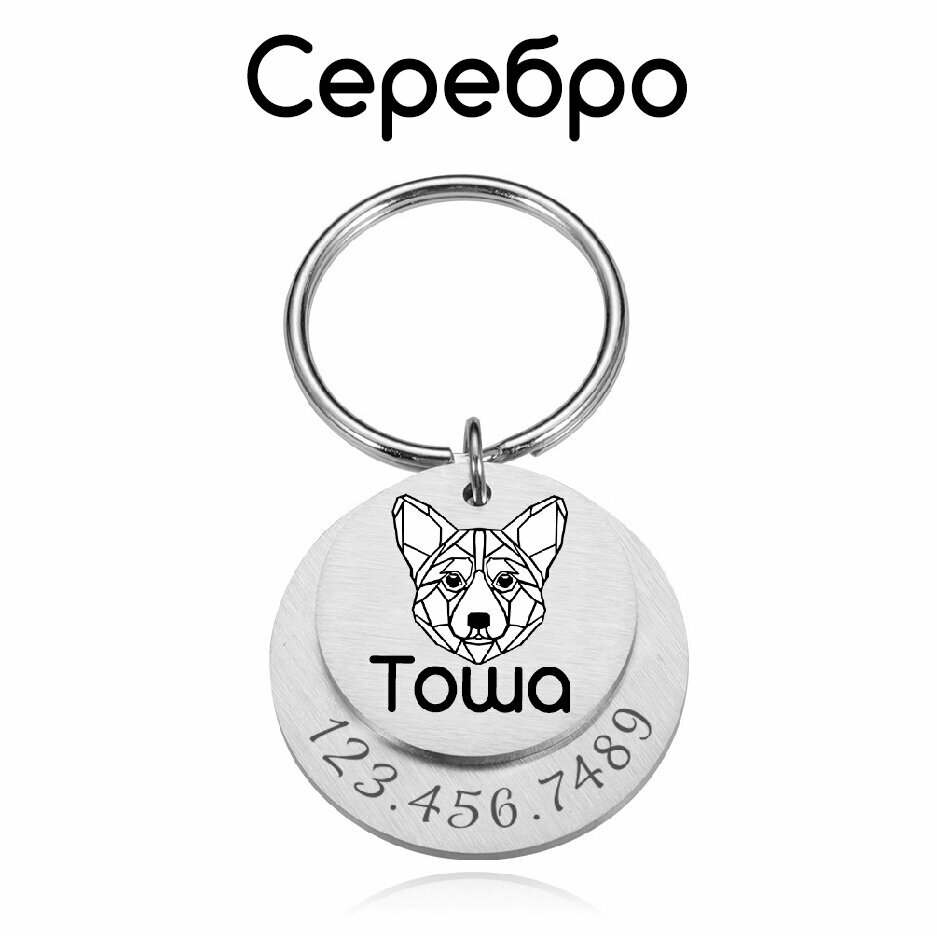 Адресник для собак и кошек с гравировкой, брелок на ключи, именной жетон 30мм, двойной, Серебро, матовый, V2
