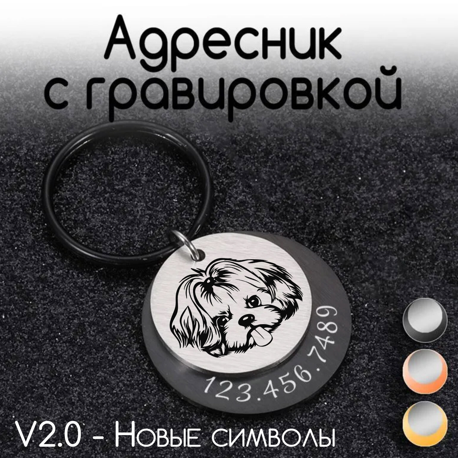 Адресник для собак и кошек с гравировкой, брелок на ключи, именной жетон 35 мм, двойной, Серебро, матовый, V2