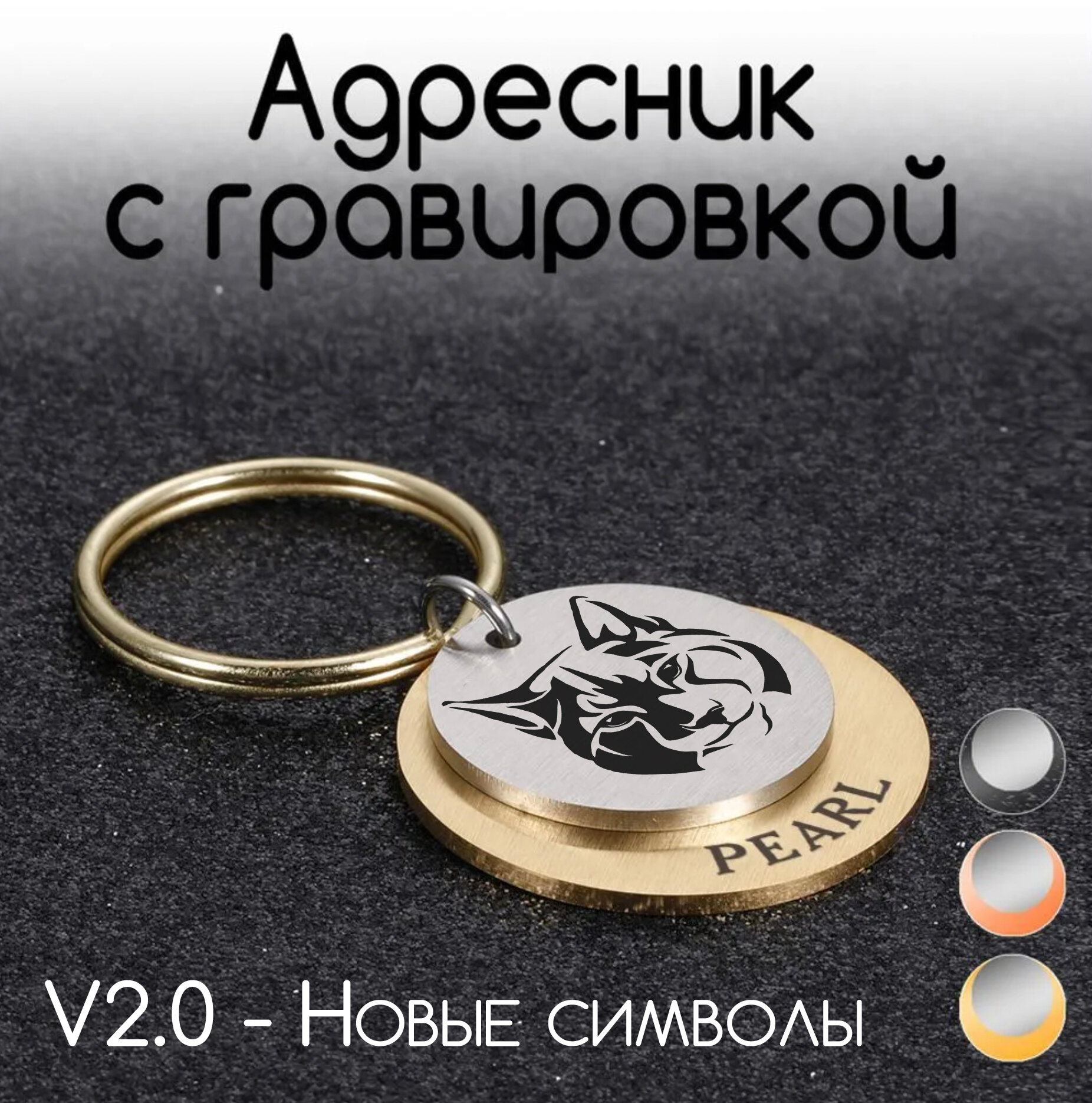 Адресник для собак и кошек с гравировкой, брелок на ключи, именной жетон 35 мм, двойной, золото, матовый, V2