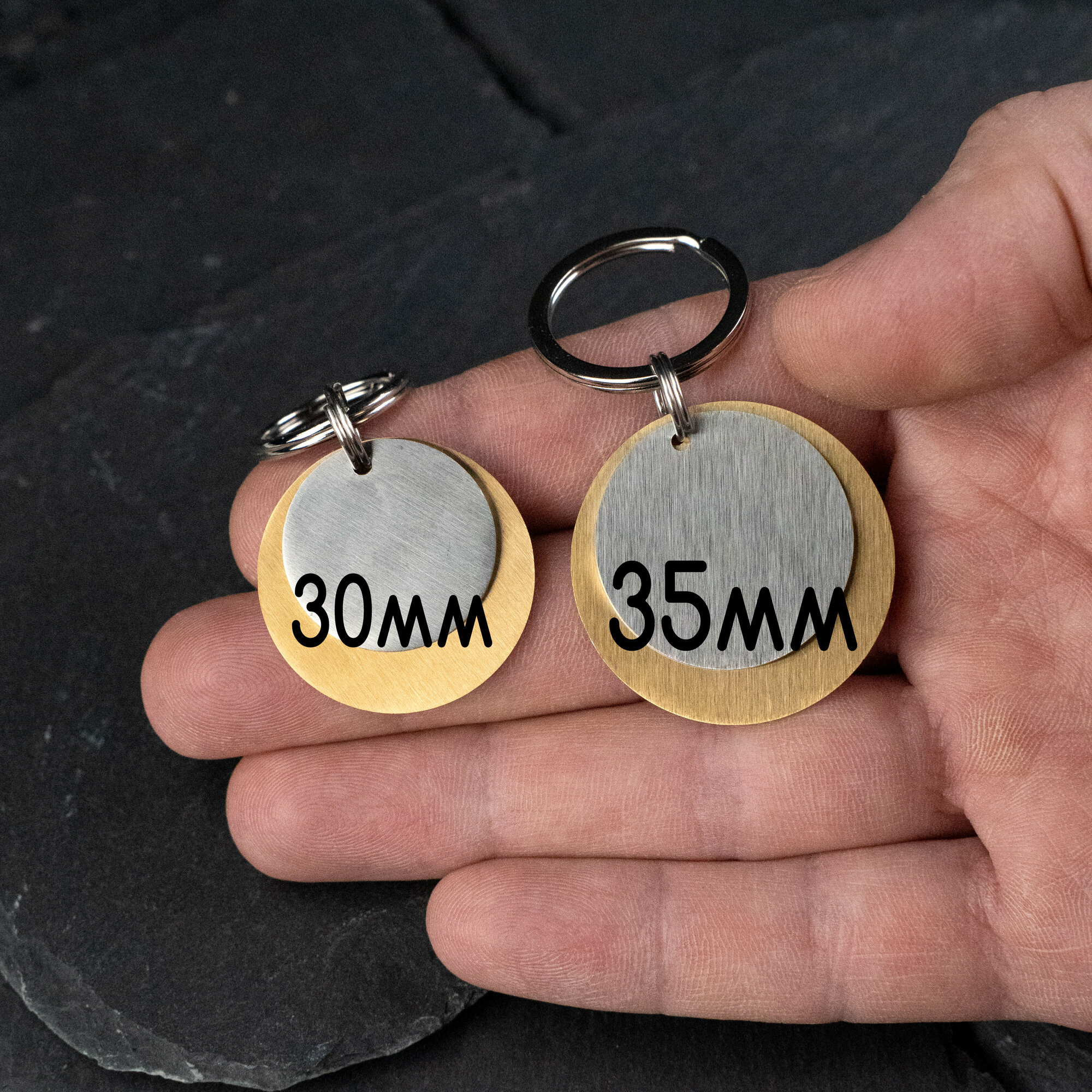 Адресник для собак и кошек с гравировкой, брелок на ключи, именной жетон 30мм, двойной, золото, матовый, V2