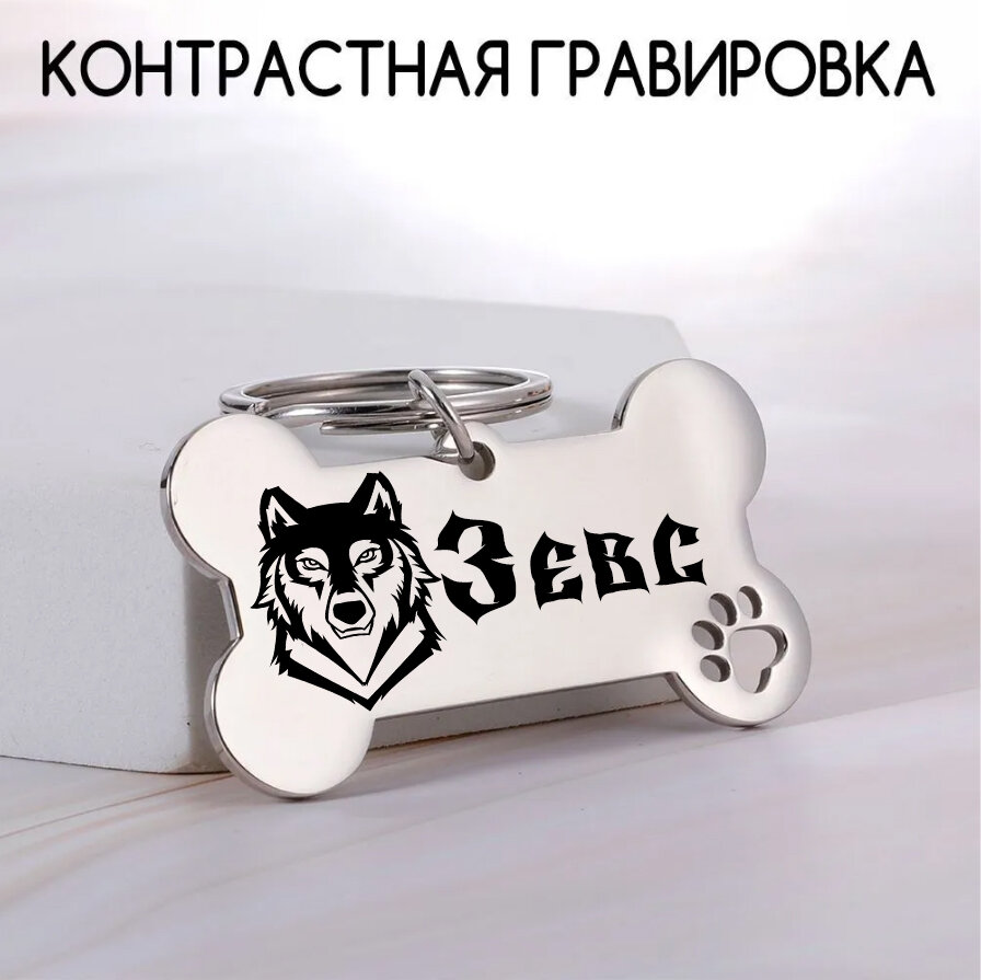 Адресник для собак и кошек с гравировкой, брелок на ключи, именной жетон, размер 40х21mm Серебро. Зеркальный (нержавеющая сталь) v2.0