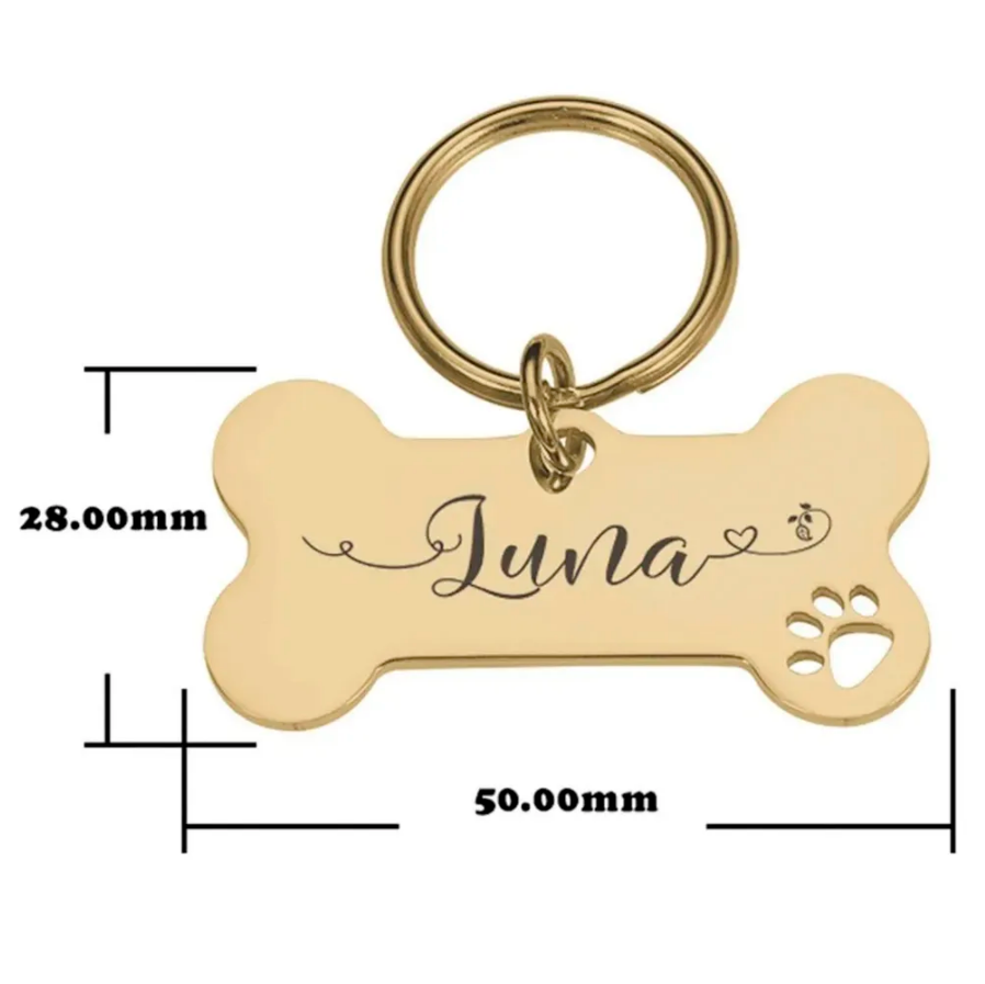 Адресник для собак и кошек с гравировкой, брелок на ключи, именной жетон, размер 40х21mm Золотой зеркальный (нержавеющая сталь) v2.0