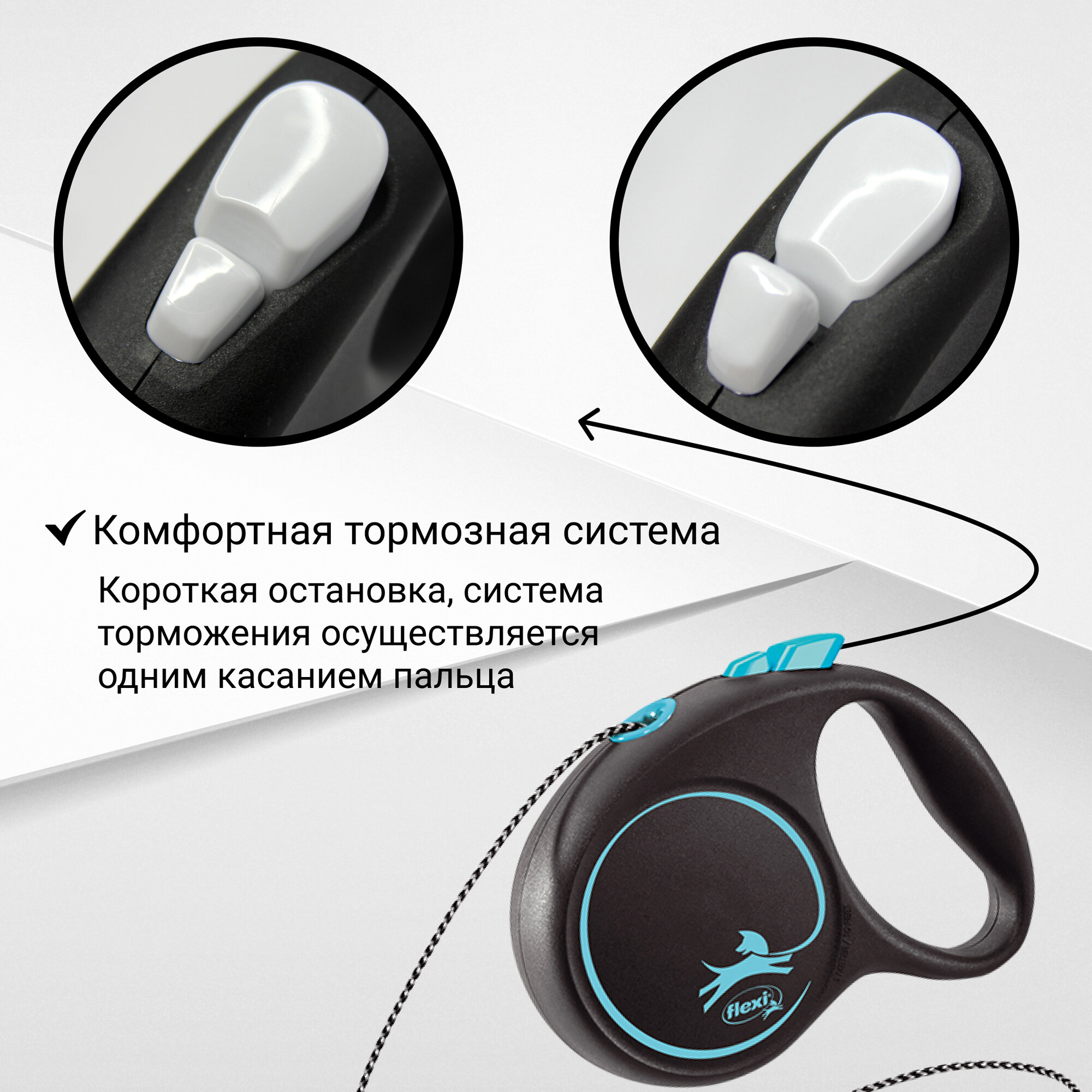 FLEXI BLACK DESIGN CORD тросовый поводок рулетка для животных 3 м размер XS голубой (1 шт)